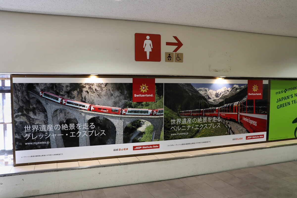 In der obersten Spitzkehre: Aufnahme aus dem bis hierher hinteren Fenster eines aufwärts fahrenden Zugs vom abwärts fahrenden Gegenzug 1001-2201-1002. 7.Oktober 2014