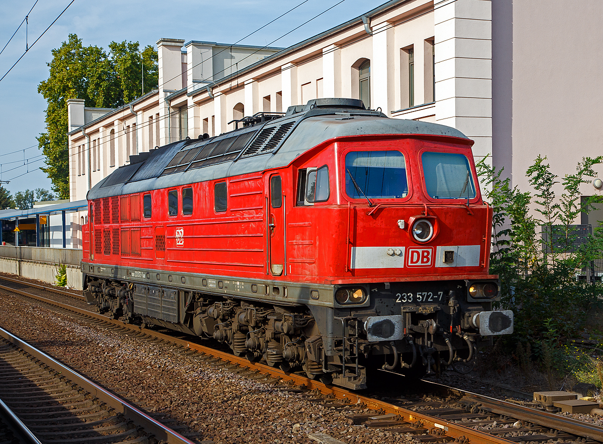 Die 233 493-6 „TIGER“ (92 80 1233 493-6 D-DB) bzw. Lok 13 der DB Bahnbau Gruppe, ex DB 232 493-7, ex DR 132 493-8, fährt am 20.08.2021, mit einem Bauzug (bestehend auch einigen Materialförder- und Silowagen MSF-100 der MGW Gleis- und Weichenbau) , durch Betzdorf/Sieg in Richtung Köln.