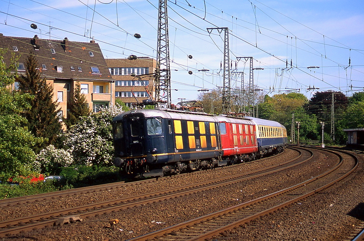 Re 4/4 I 10019 und 10008 der Centralbahn AG am 31.05.2013 im Duisburger Hauptbahnhof vor dem "Hetzerather", ein Sonderzug, der Feierlustige freitags von Rheine/Münster an die Mosel und sonntagnachmittags zurückbringt
