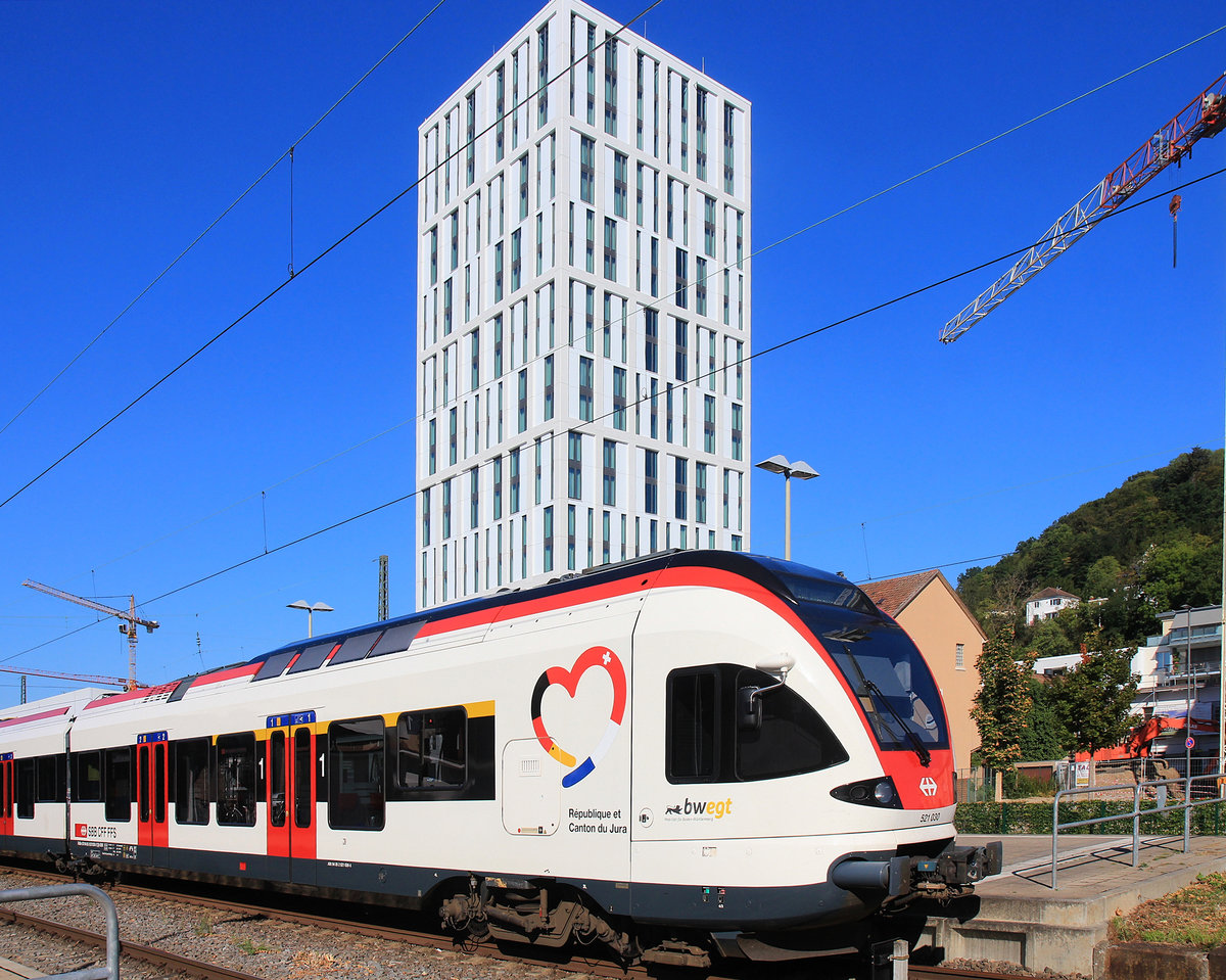Abfahrbereit steht ein RABe 521 am 09.08.2015 im Endbahnhof Zell im Wiesental. Von den einstmals umfangreichen Gleisanlagen ist nur noch ein Stumpfgleis übrig geblieben...