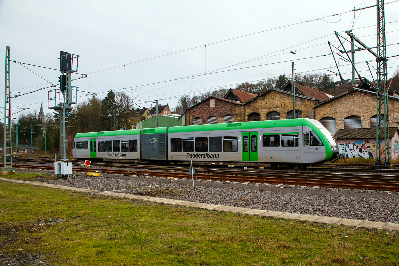 Ein Stadler GTW 2/6 der Westerwaldbahn des Kreises Altenkirchen GmbH (WEBA) "Daadetalbahn", verlässt am 08.05.2023, als RB 97 "Daadetalbahn" nach Betzdorf, den Hp Niederdreisbach (zuvor Bf) und fährt weiter in Richtung Betzdorf (Sieg). Es war wohl der erste Zug des Tages, denn am Abend zuvor (des 07.05.) und in der Nacht gab im Daadetal mächtigen Starkregenfälle, so musste erst die Strecke auf Unterspülungen untersucht werden.