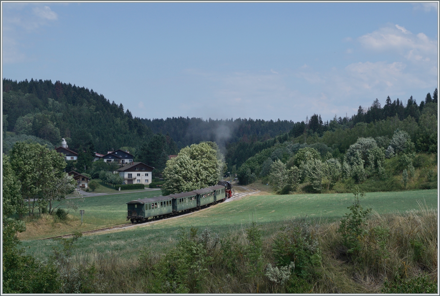30 ANS CONI'FER /30 Jahre Coni'Fer - So viel Verkehr gab es wohl hier seit gut 110 Jahren nicht mehr! Der X 2816 der Association l'autorail X2800 du Haut-Doubs wartet im mir bis anhin unbekannten Kreuzungsbahnhof der Coni'Fer von Le Touillon auf den von der 52 8163-9 geführten Gegenzug.