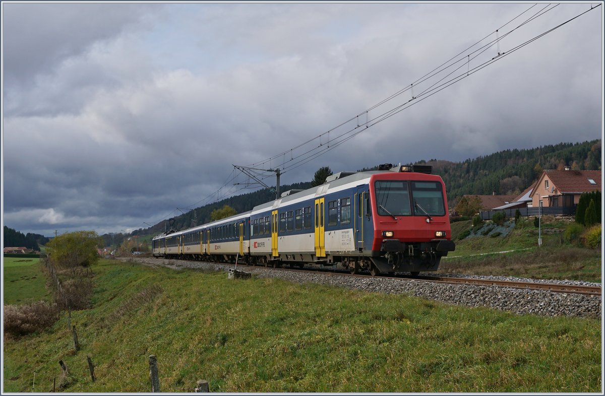 Der SBB RABe 522 207 ist als RE 18124 zwischen Les Verrieres und Pontralier kurz vor La Cluse et Mijoux auf dem Weg von Neuchâtel nach Frasne.