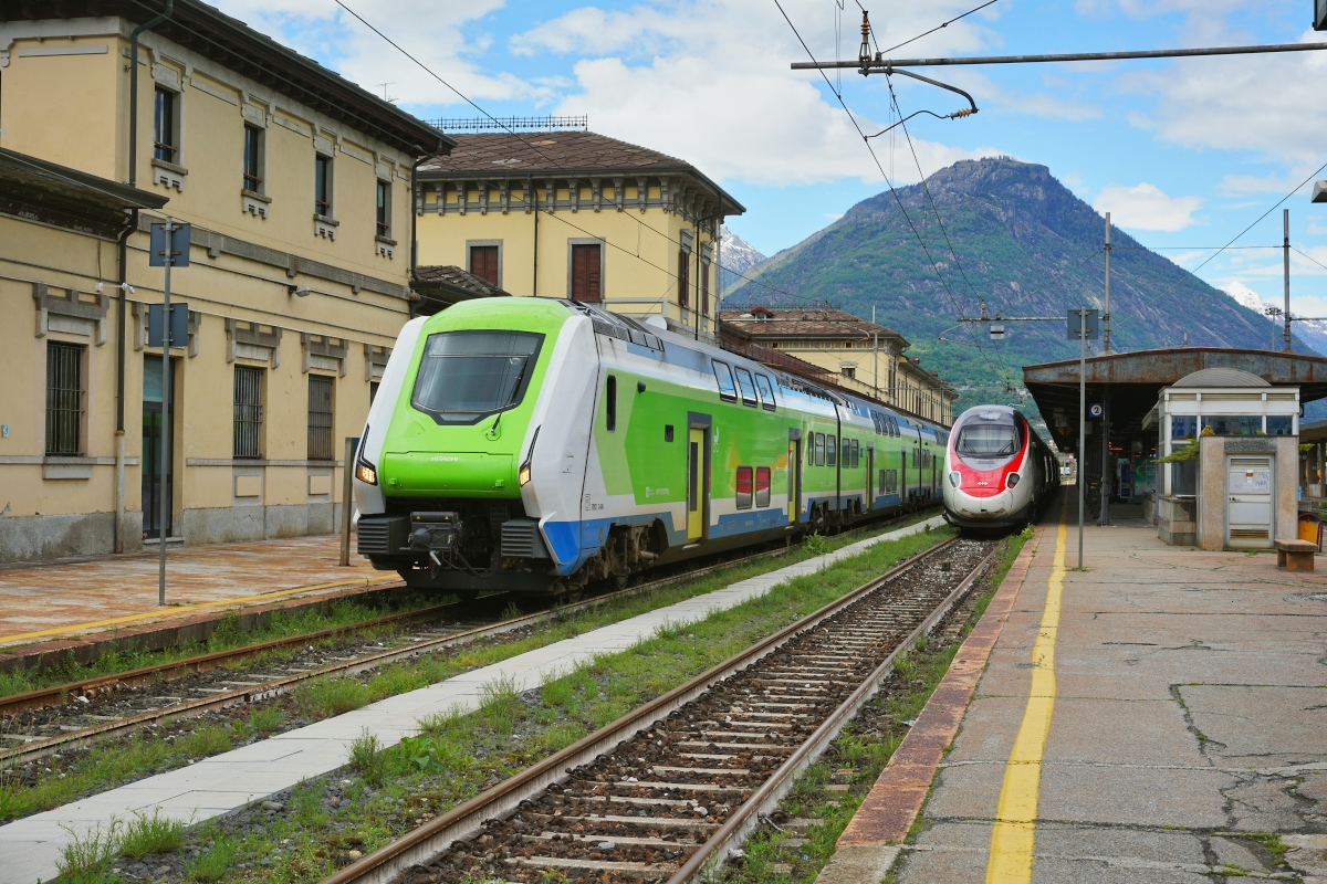 Die Trenord hat z.Z. 105 dieser Doppelstock-Elektrozüge vom Typ Hitachi „Caravaggio“, als Baureihe ETR 421, ETR 521 oder ETR 521 S1 (ETR steht für italienisch Elettro Treno Rapido). Der Unterschied zwischen den beiden fünfteiligen ETR 521 und ETR 521 S1 (ursprünglich als ETR 522 vorgesehen) ist mir noch unbekannt.