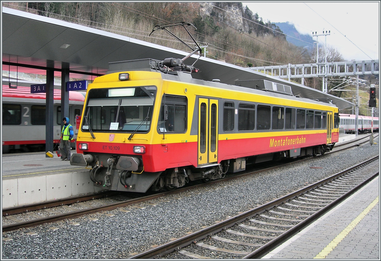 Vom schweizerischen Buchs ins österreichische Feldkirch verläuft der längste Streckenabschnitt der Vorarlbergbahn durch das Fürstentum Lichtenstein. Am 15.11.2014 schiebt 1116 202 den RJ 165, Zürich - Budapest, an der Haltestelle Schaan-Vaduz vorbei, eine von insgesamt drei Haltestellen/Bahnhöfen in Lichtenstein.