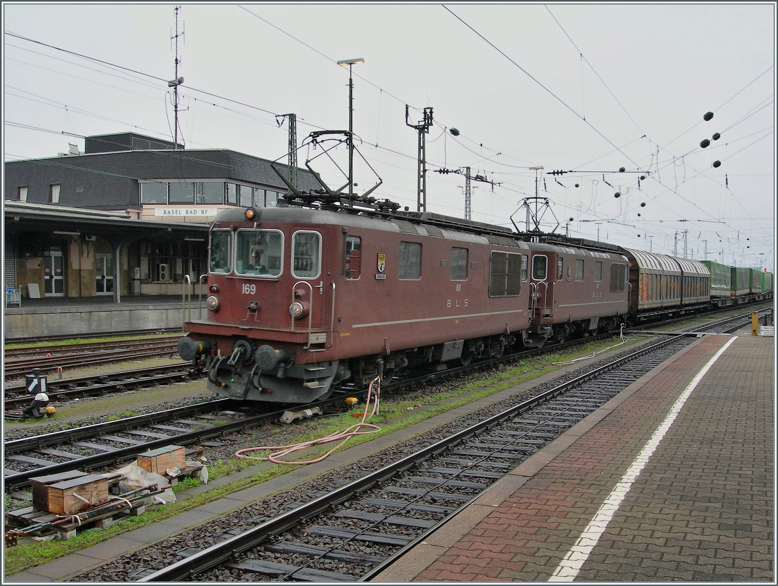 Der Schnappschuss zeigt weit mehr "Schweiz" als auf den ersten Blick vermutet werden könnte: Das Bild der (halben) NS Lok habe ich in Basel Bd. Bf. gemacht. Der Badische Bahnhof von Basel gehört zwar Grenz-/Zolltechnisch zu Deutschland, liegt aber auf dem Territorium der Schweiz. Ich denke die NS 193 263 ist mit einen NJ nach Basel gekommen und wartet nun auf die abendliche Gegenleistung.