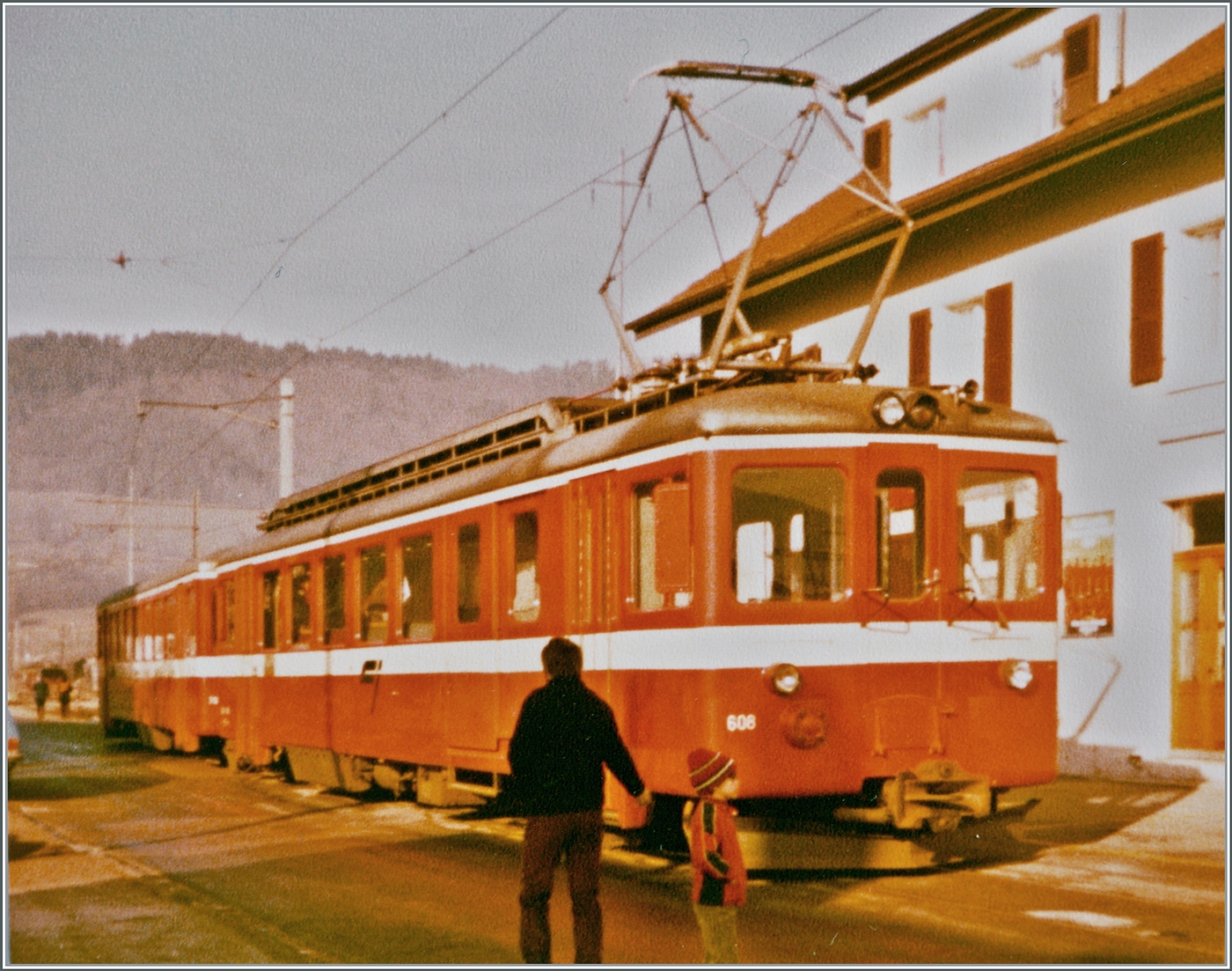 Nachdem Stefan hier einige Bilder der "alten" und "neuen" Abfahrtsstelle der CJ in Glovelier gezeigt hat, möchte ich das mit einigen Fotos aus dem Sommer 1997 ergänzen: BDe 4/4 I 601 auf dem Bahnhofsvorplatz Horst Lüdicke