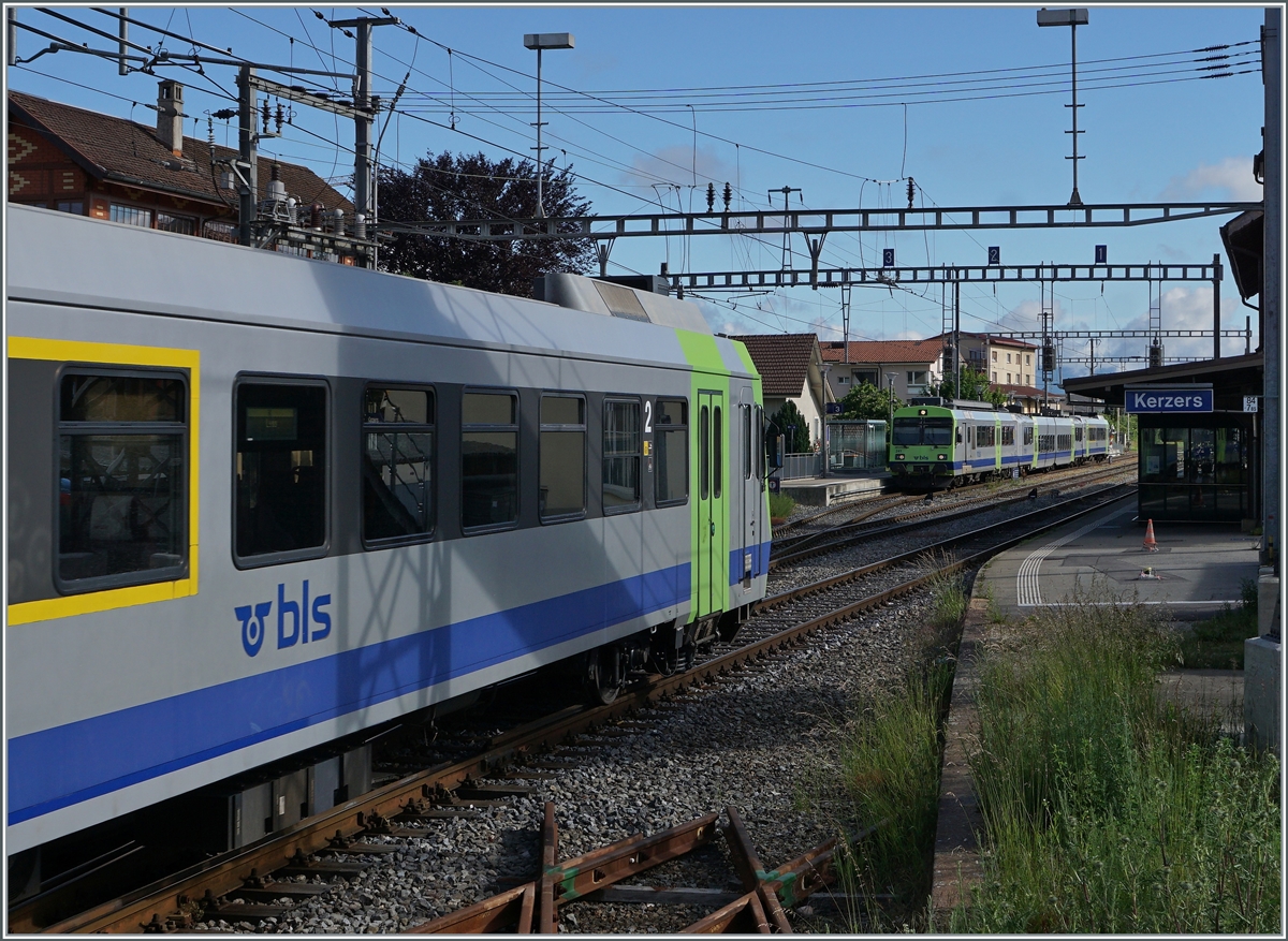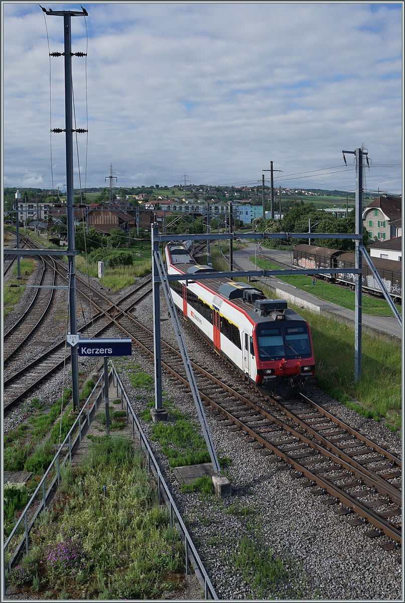 Der in Kerzers aus Lausanne eingetroffen SBB RBDe 560 Domino erreicht den "BN/BLS" Teil des Bahnhofs.