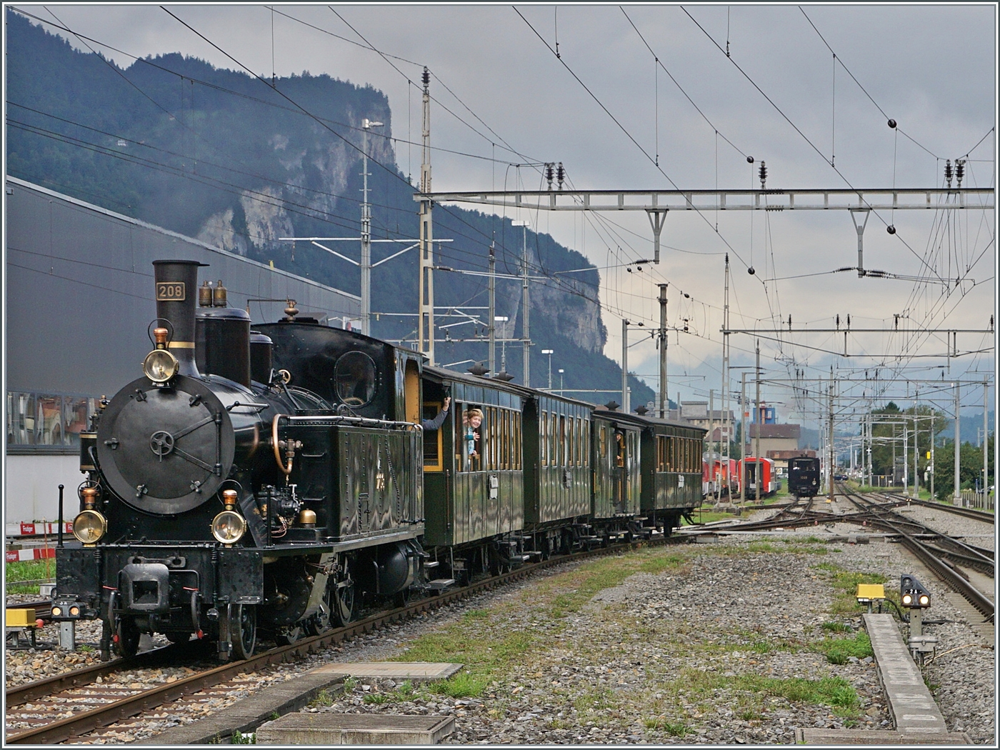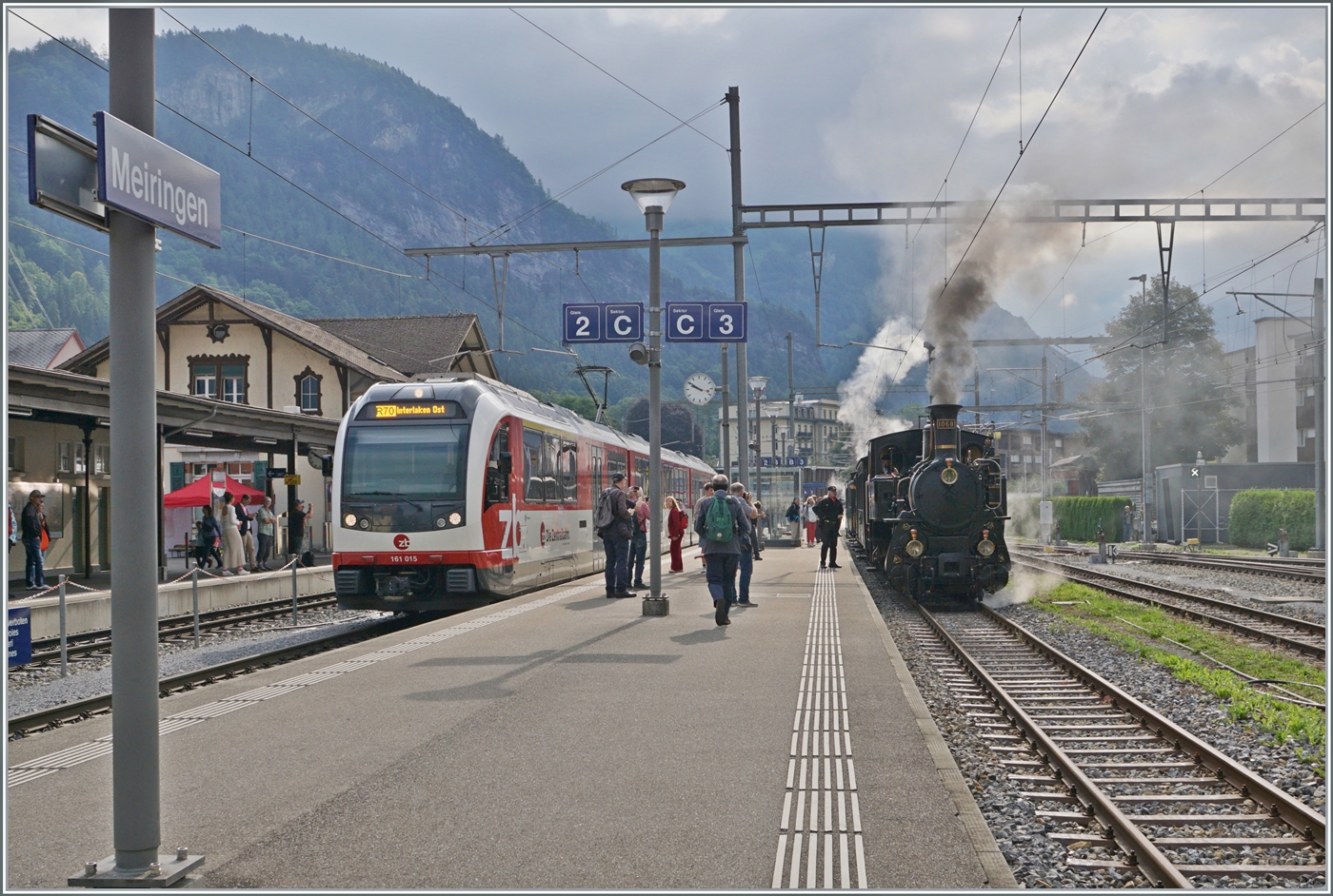 Da wir schon bei Neuheiten sind: Dieser ehemalige FW-Triebwagen Be 4/4 14 hat ein besonderes Schicksal gegen Ende seiner Karriere. Sein Betrieb soll bis zu 125‰ Steigung ohne Zahnrad ermöglichen. Meiringen, Juli 2023.