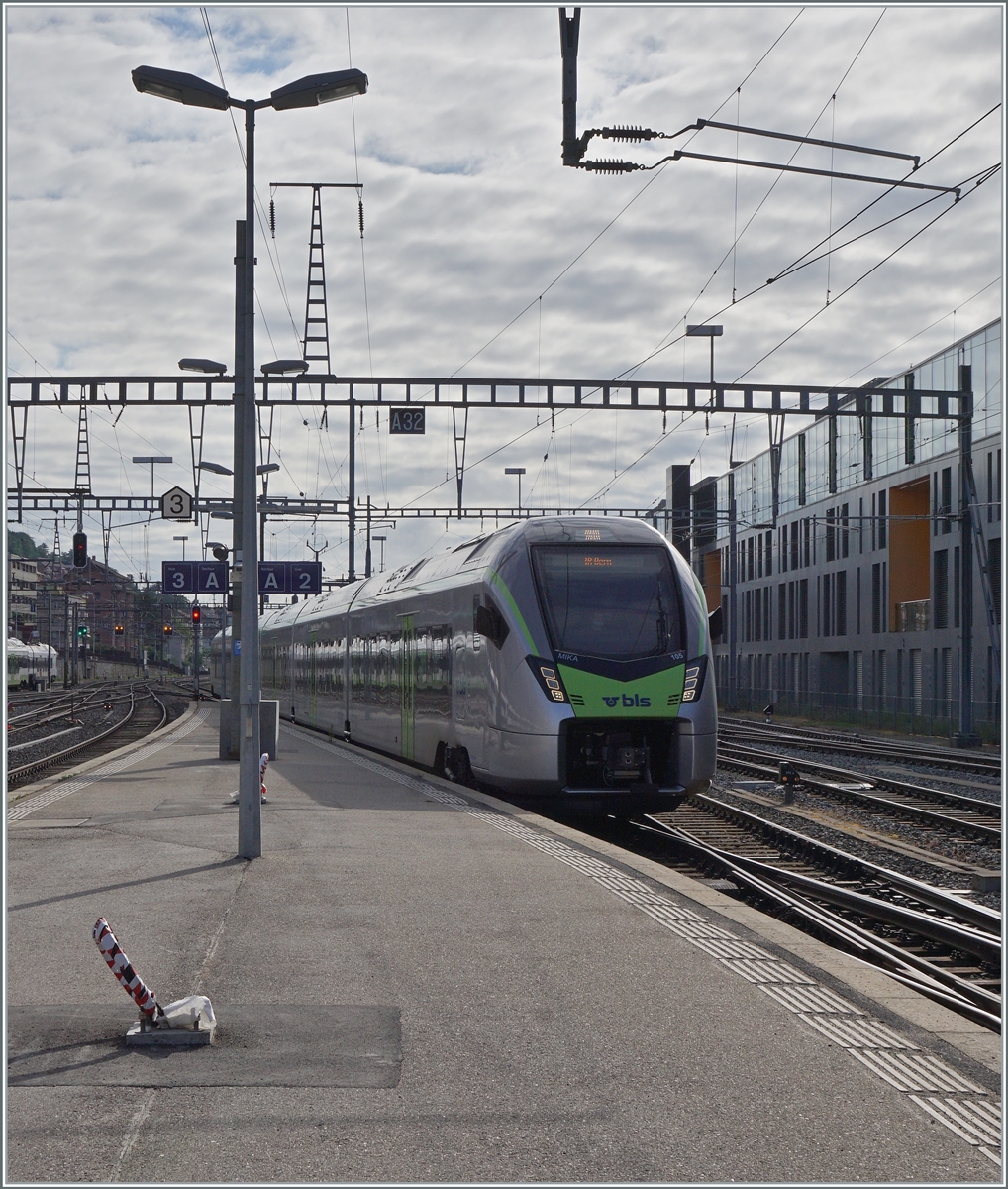 Geführt von dem BLS Steuerwagen 998 (Bt 50 85 80 – 35 998-4 CH-BLS) ein 2. Klasse Einheitswagen III (EW III), ex 1. Klasse Wagen, (Steuerwagenvoraus) fährt am 18.05.2018 ein BLS EWIII - Pendelzug im Bahnhof Neuchâtel ein. Schublok (nicht im Bild) ist die BLS Re 465 001-6 "Simplon/Sempione" (91 85 4465 001-6 CH-BLS).