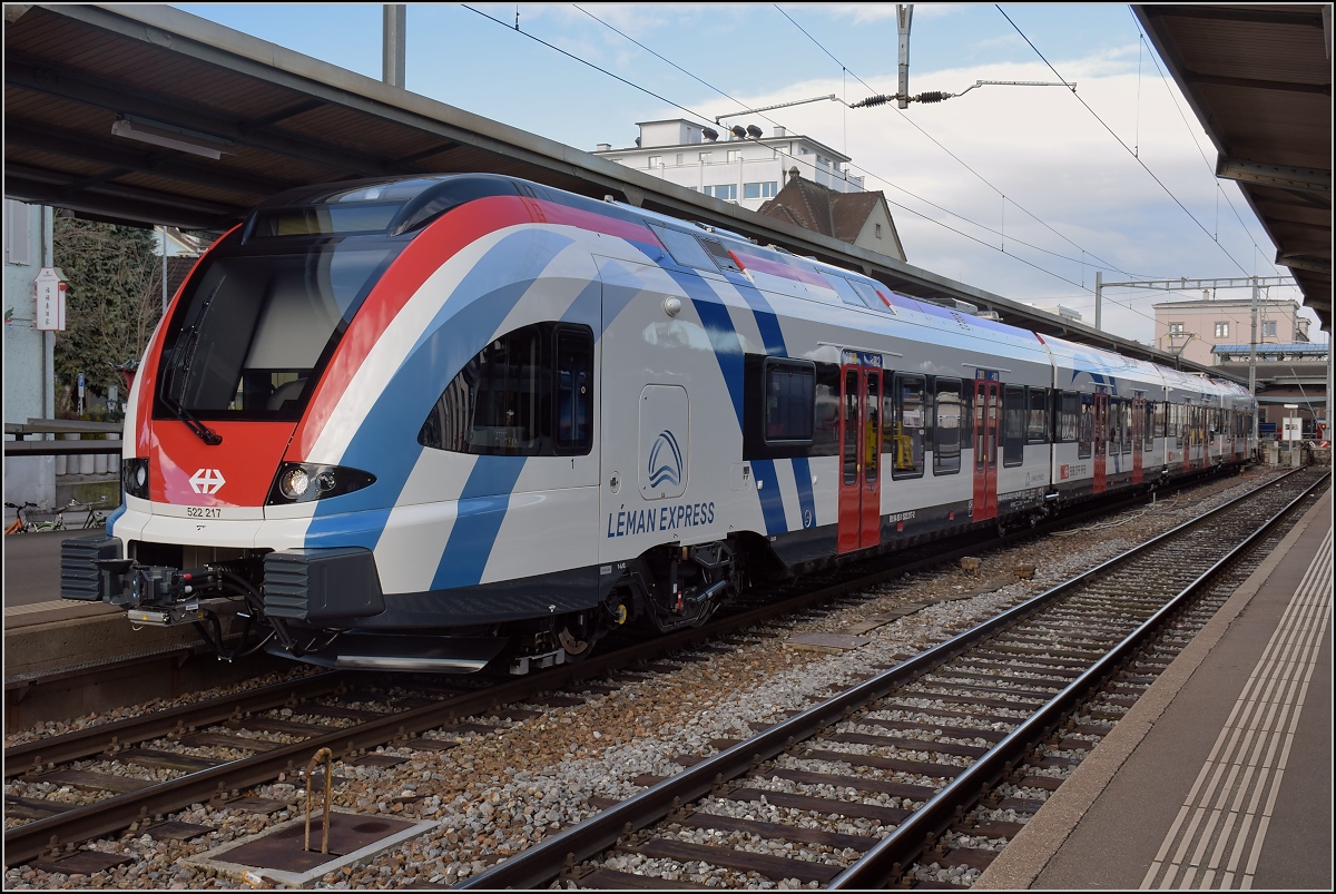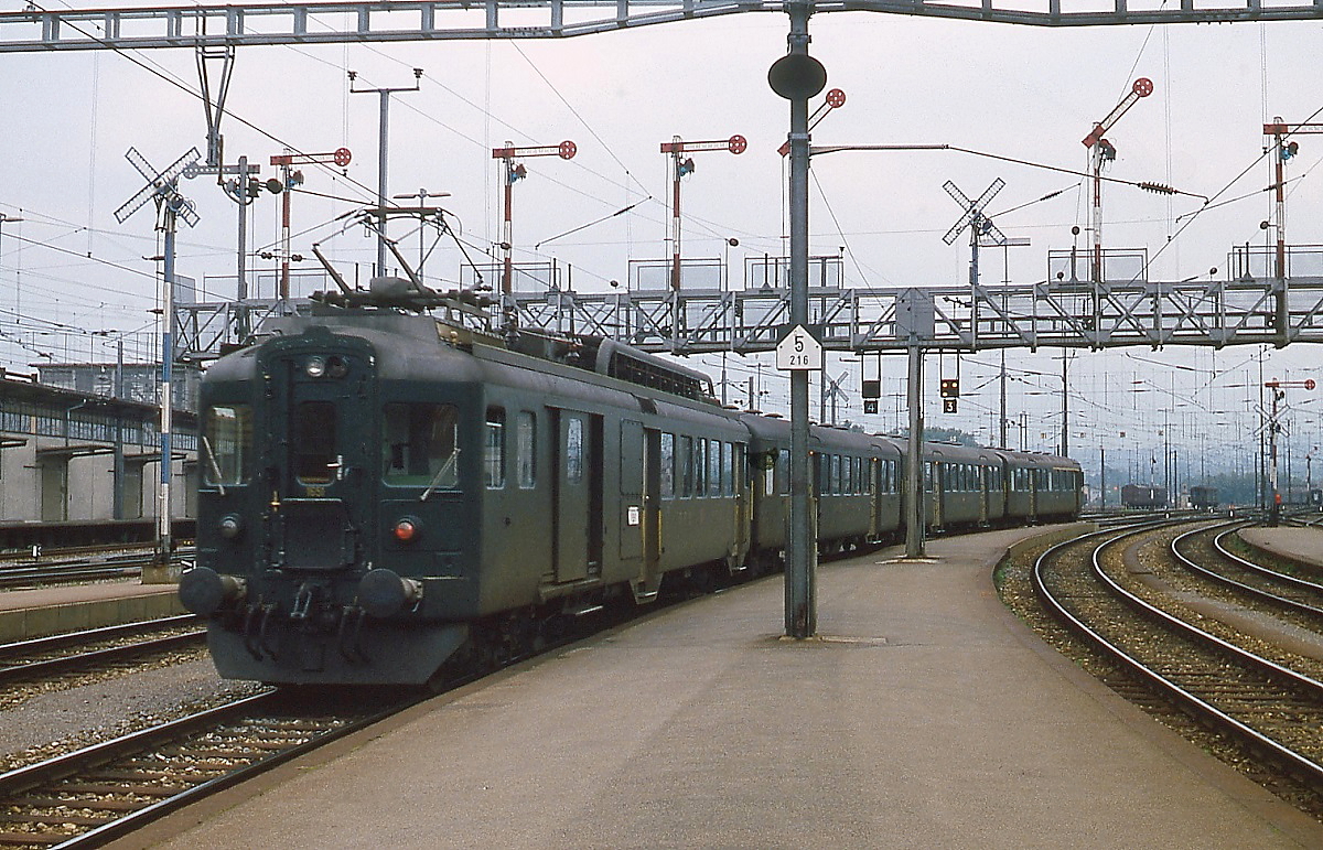Der BDe 4/4 1648 steht im Frühjahr 1979 abfahrbereit nach St. Gallen im Bahnhof Romanshorn