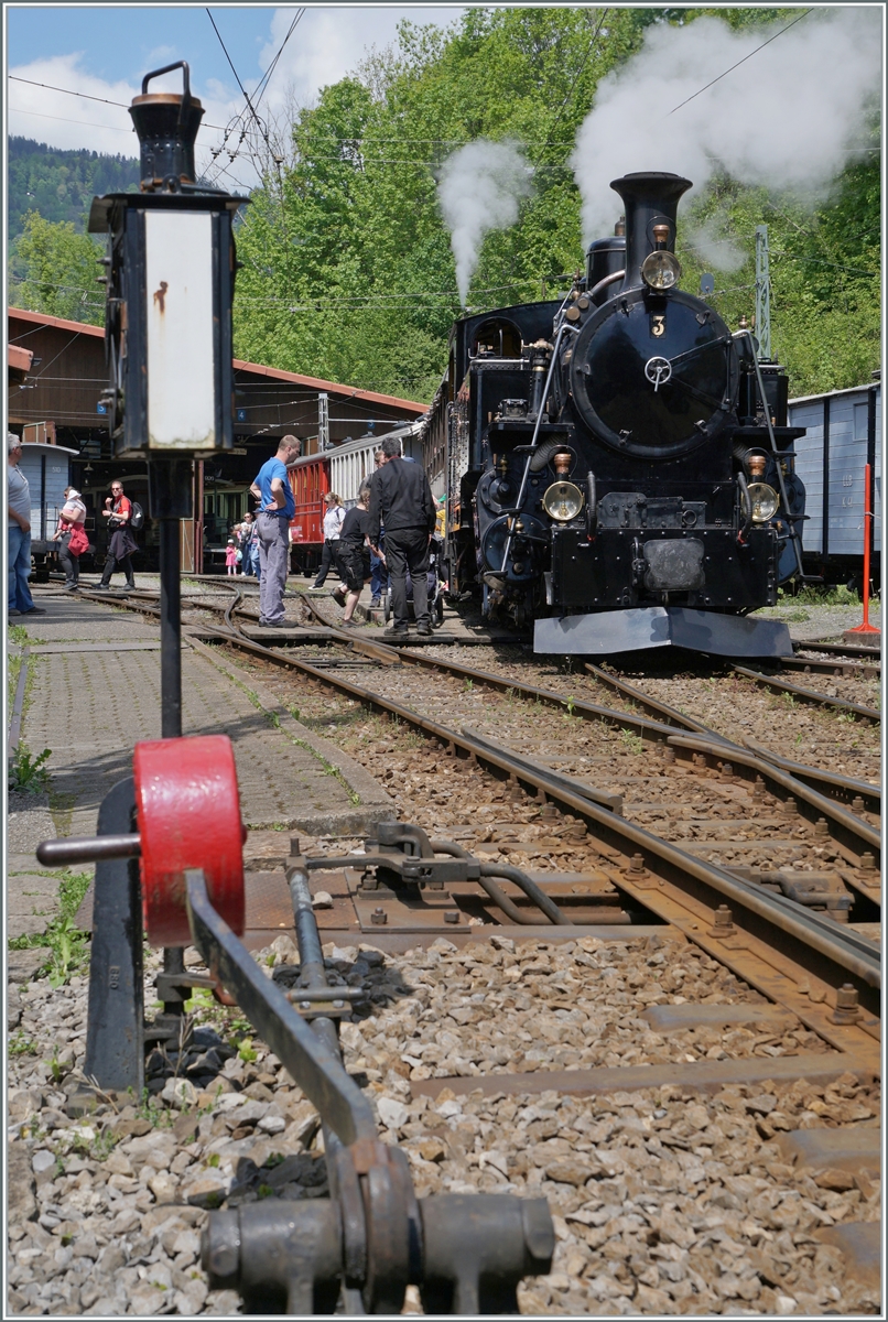 Links im Bild ist die G 3/3 N° 5 (ex LEB) zu sehen.