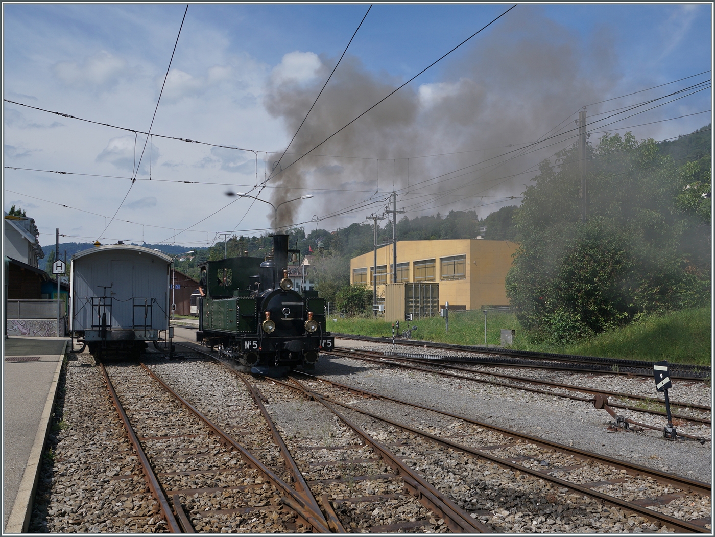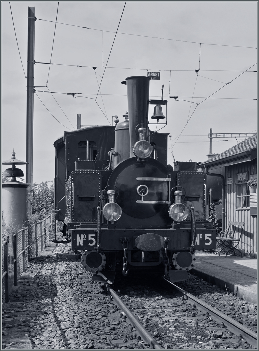 Die Blonay Chamby BAM G 3/3 6 ist zum Nationalfeiertag festlich geschmückt. Chaulin, den 1. August 2016