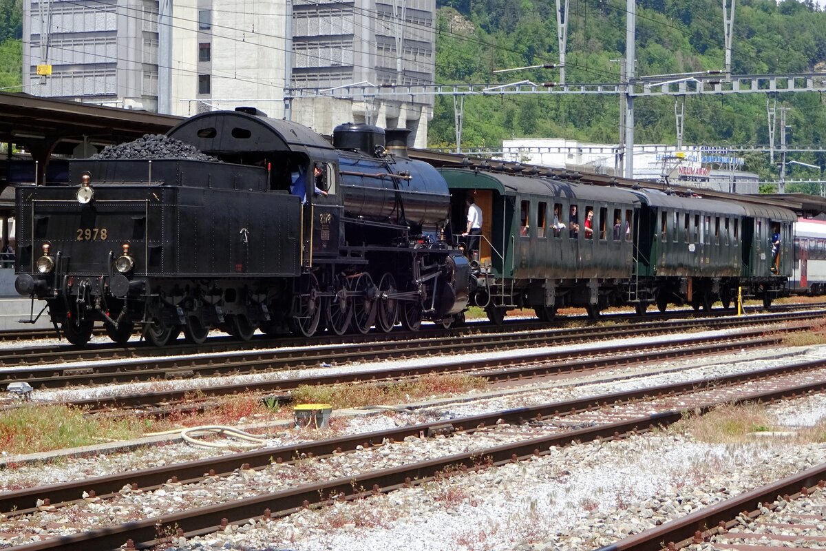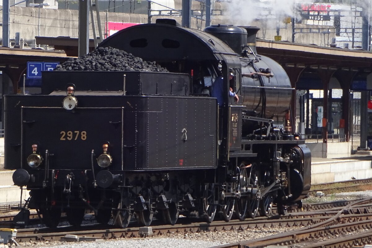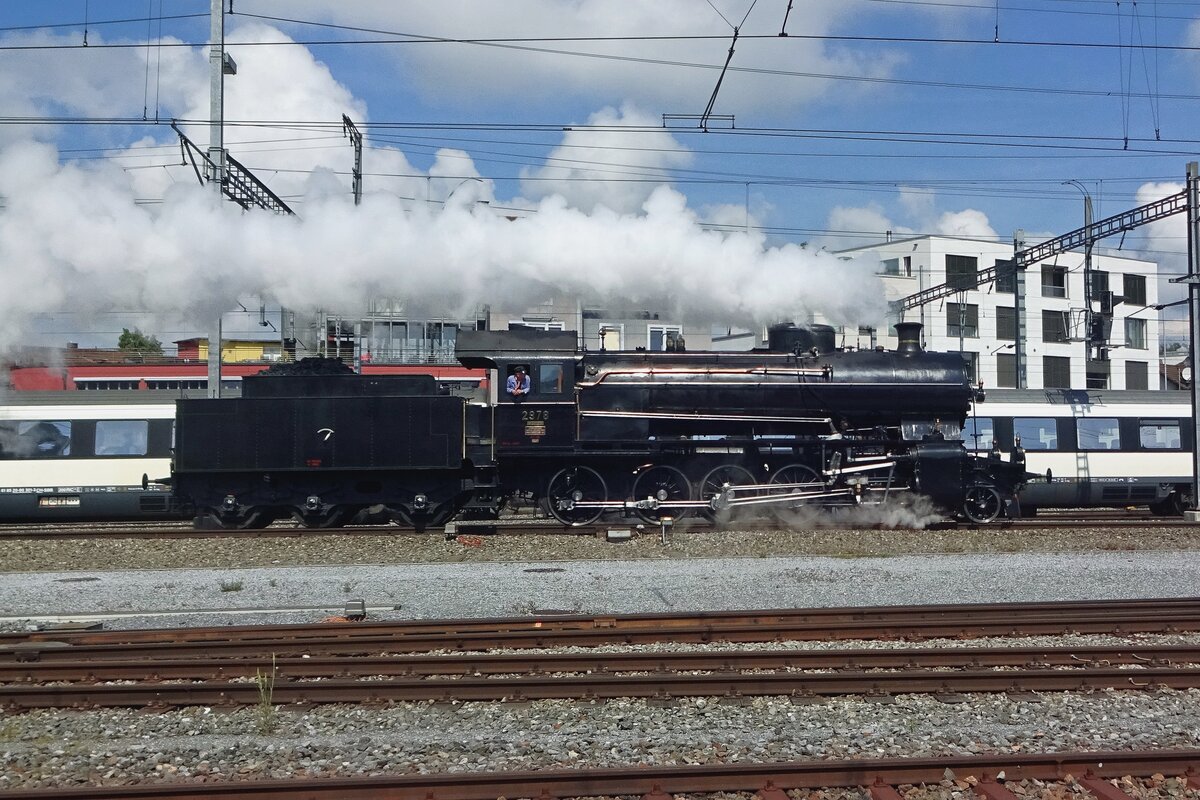 Die SBB Historic C 5/6 2978 "Elefant" bei den Feierlichkeiten "150 Jahre Schweizer Bahnen" (1847-1997) in Delémont bei der Drehscheibe.
