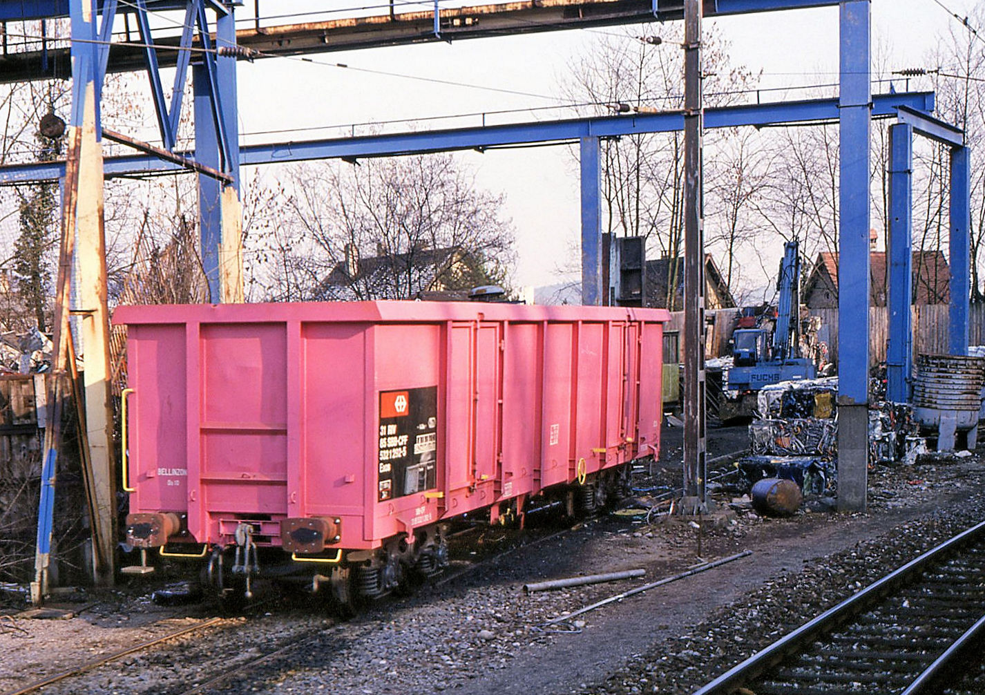 Die BAM MBC Ge 4/4 22 ist mit fünf Eaos zwischen Reverolle und Chardoney-Château angekommen und wartet auf die Verladung der Zuckerrüben, was noch etwas dauert, ist doch der mit diesem Zug angekommener Tm 2/2 41 mit zwei Eaos noch zur vorher liegenden Verladestelle zurückgefahren und dort die noch verblieben Rüben aufzuladen.