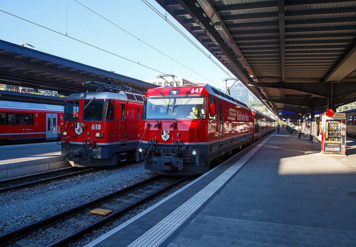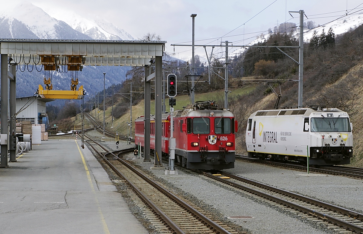 Während die beiden BAM MBC Ge 4/4 mit ihrem Zug von Apples nach Gland für den Spurwechsel manövrieren, erreicht ein BAM Zug sein Ziel Morges.
