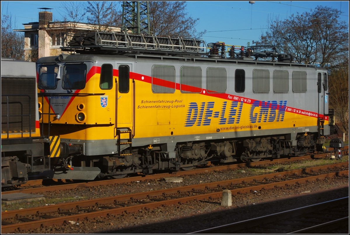 Einer der Lokoop/MThB-Holzroller bei seiner damals neuen Bestimmung in Kassel. Bei der DR lief die Lok als BR 242, bei der DB als BR 142, bei der Lokoop als Ae 476, bei der MThB als Ae 477 und inzwischen wieder als BR 142. Die Loknummer war leider nirgendwo angeschrieben, so dass man sie nur als eine der MThB-Maschinen identifizieren konnte. Februar 2008.