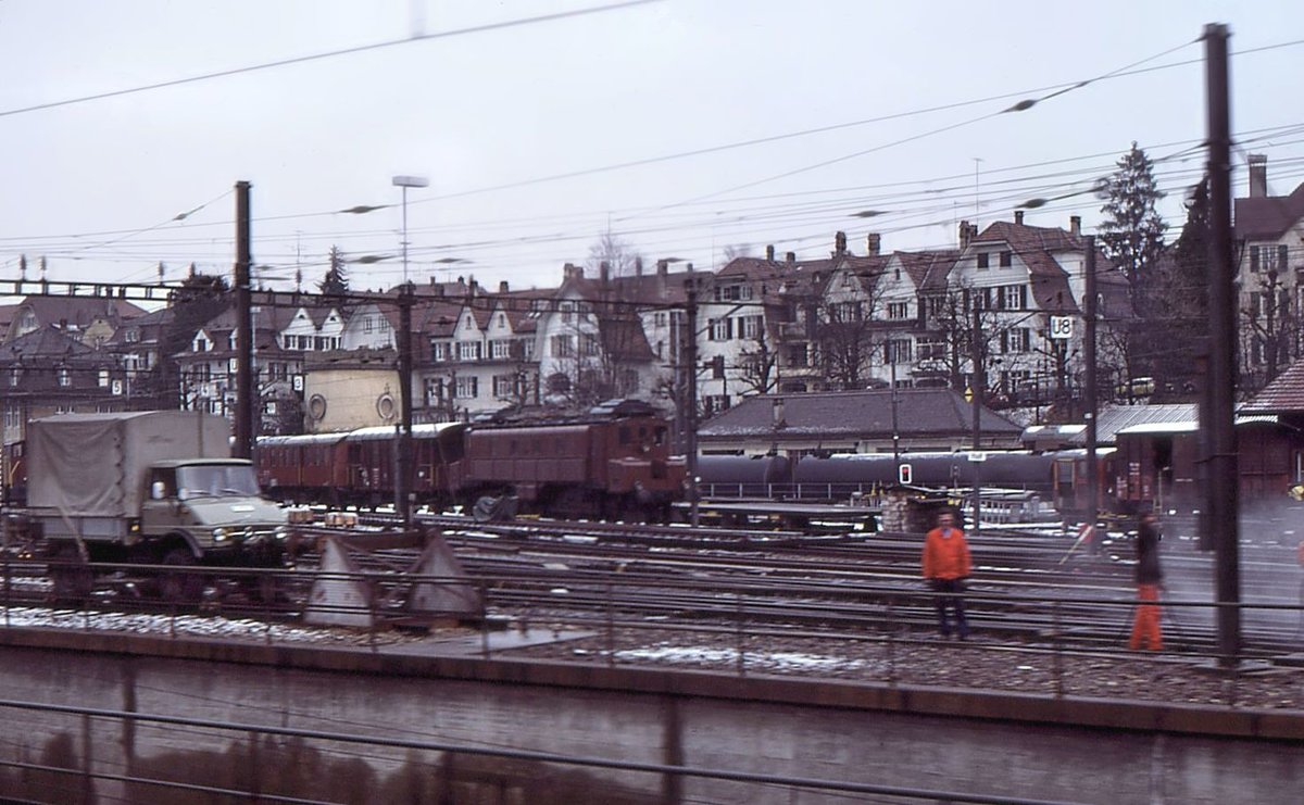Modernes zurückgedrängt, Be 4/6 12320 rangiert vor der historischen Ware und die Grossmutter Ce 6/8I 14201 wartet auf Abholung. Denn beide Loks müssen vor den Zug im Hintergrund, bevor es weitergeht nach Brunnen, wo bereits der grüne Blindenhund Re 4/4II 11161 für die ETCS-Strecke wartet. Arth-Goldau, Mai 2017.