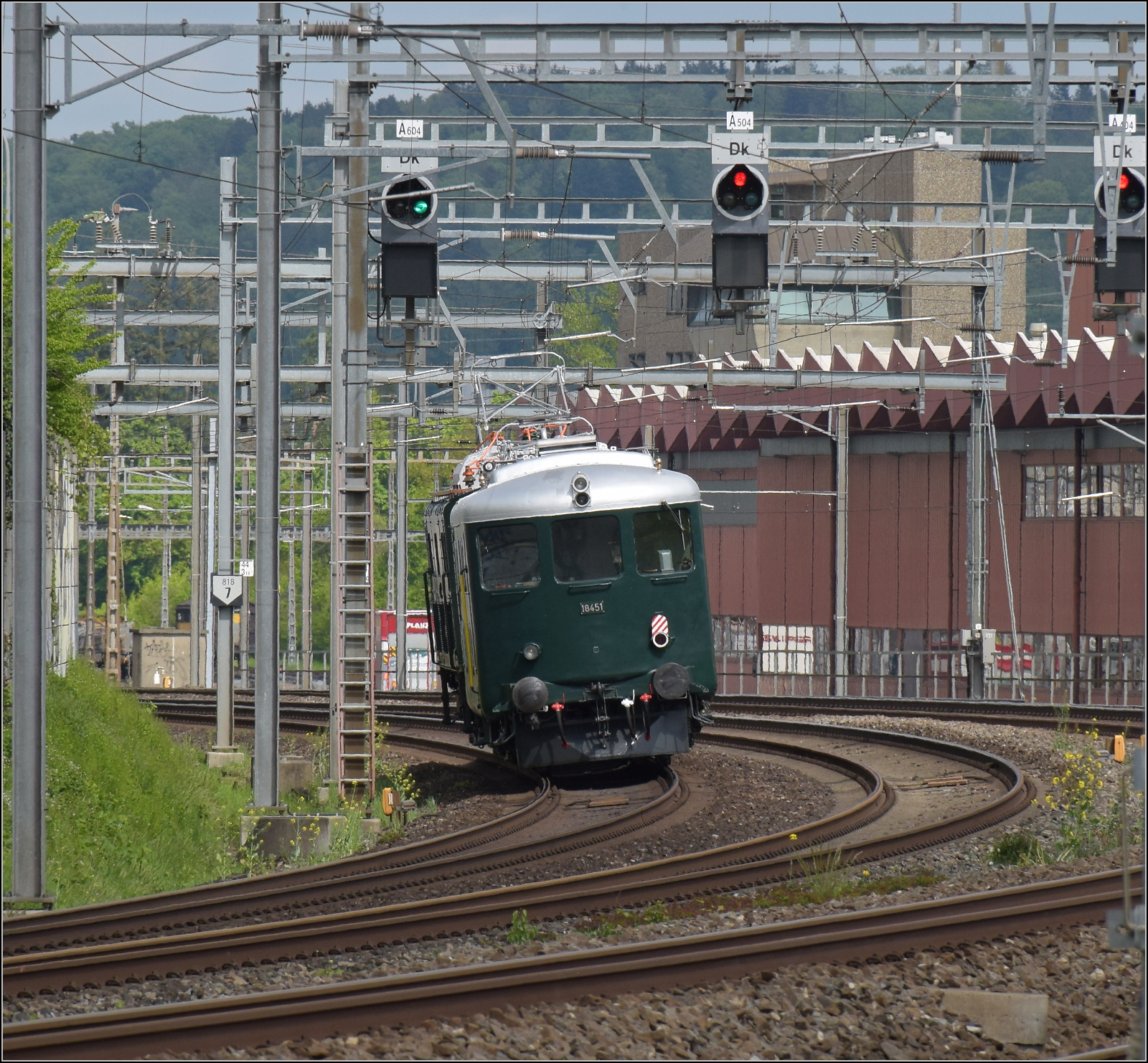Die TEE farbene SBB Re 4/4 II 112523 erreicht mit ihrem (Jurasüdfuss) Schnellzug 515 Aarau.