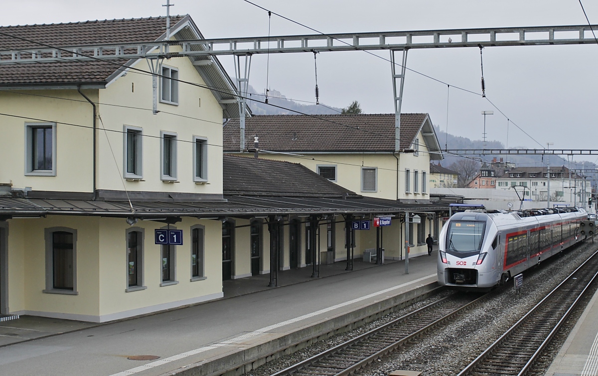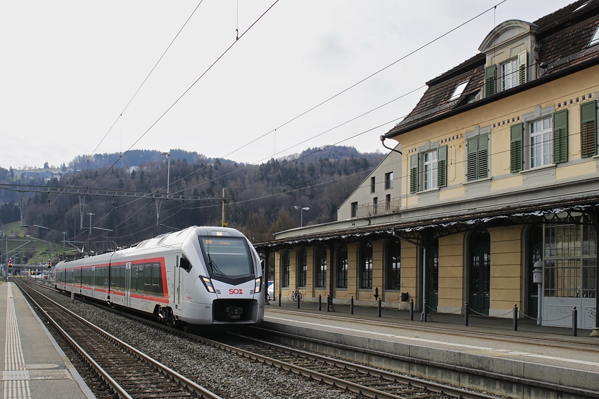S26-BB-und-IGS-Minitreffen am 27.02.2023: Der Südostbahn-Flirt 526.003 fährt in Rheineck ein