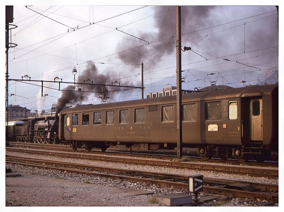RIC Wagen Bauart Schlieren: SBB Couchettes-Wagen Typ "Schlieren" 51 85 59-80 006 (gebaut 1960/61), abgestellt in Appenweier nördlich von Offenburg. 5.August 1970
