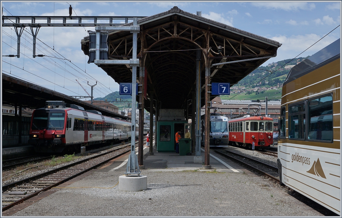50 Jahre Blonay - Chamby; Mega Steam Festival: Die BFD HG 3/4 N° 3 der Blonay-Chamby Bahn rangiert in Vevey. Der links zu sehende, abgestellte BDeh 2/4 75 wurde wenige Tages später verschrottet.