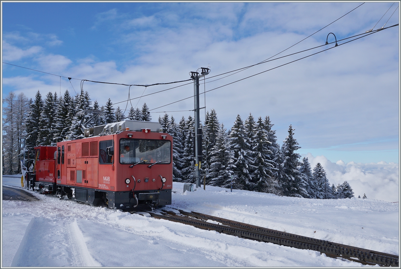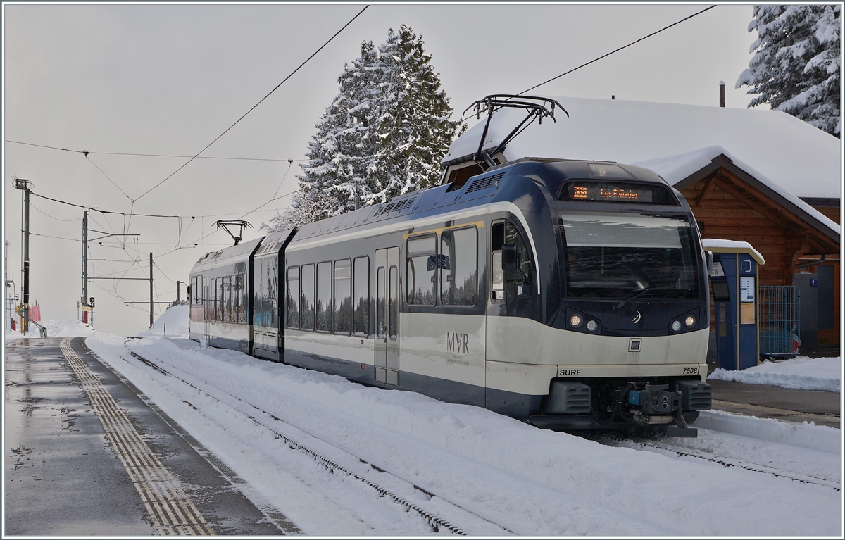 Der CEV MVR GTW Be2/6 7003 "Blonay" ist kurz vor Château d'Hauteville auf dem Weg nach Vevey.