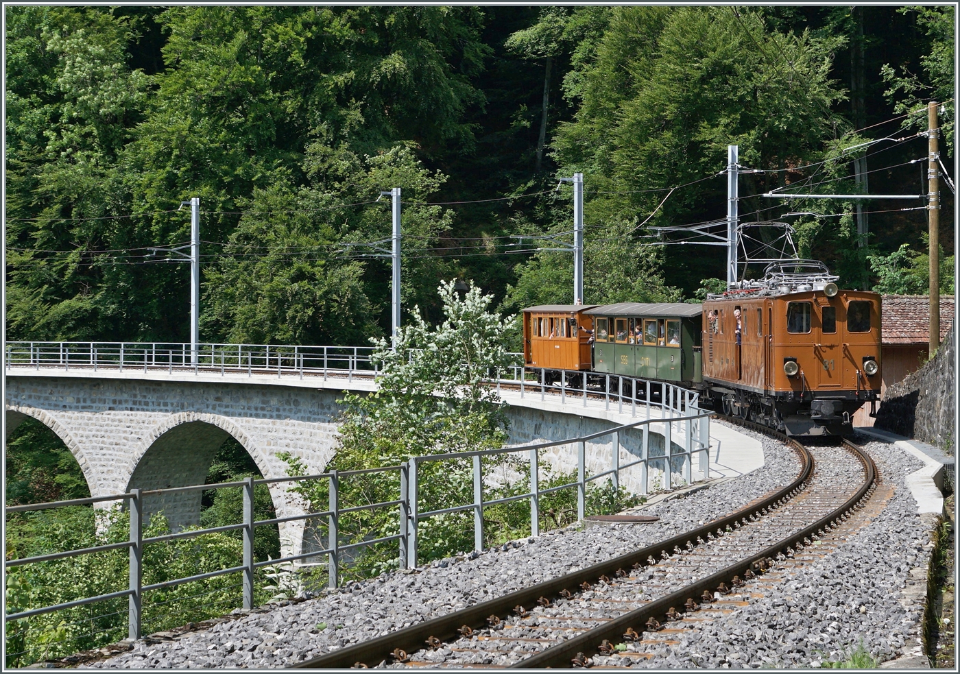 50 Jahre Blonay Chamby - MEGA BERNINA FESTIVAL: Die BB Ge 4/4 81 ist mit ihrem Zug aus Blonayin Chaulin eingetroffen. Im Hintergrund steht der FZe 6/6 der MOB und die RhB Gastlok Ge 4/4 182. 9. Sept. 2018