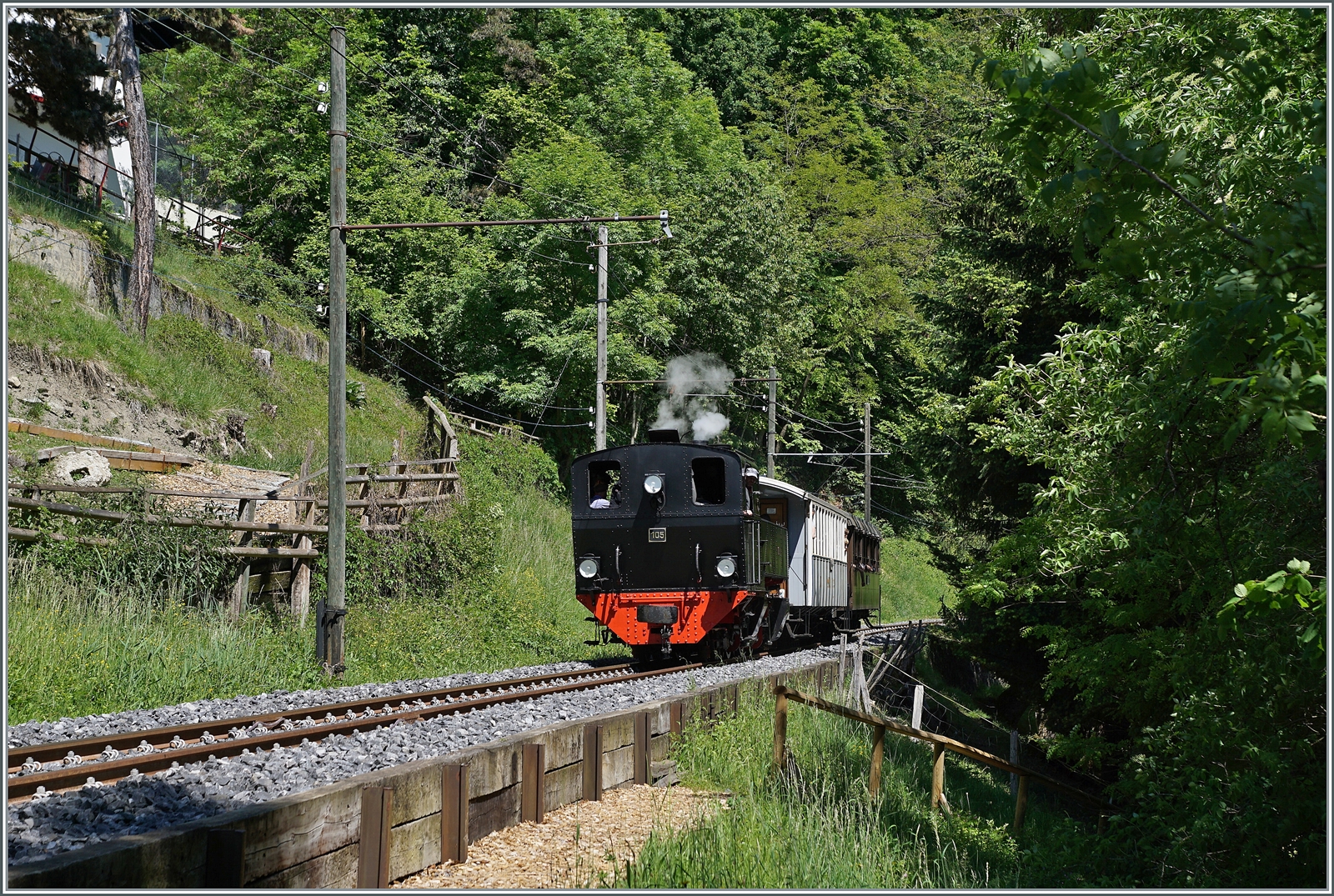 "La DER 2021 (Saison Abschluss 2021) liess die September Veranstaltung "Es war einmal - Gleise in der Stadt" noch etwas nachklingen: Der schön hergerichtete Ce 2/3 28 der TL mit Beiwagen zwischen Chamby und Chaulin.