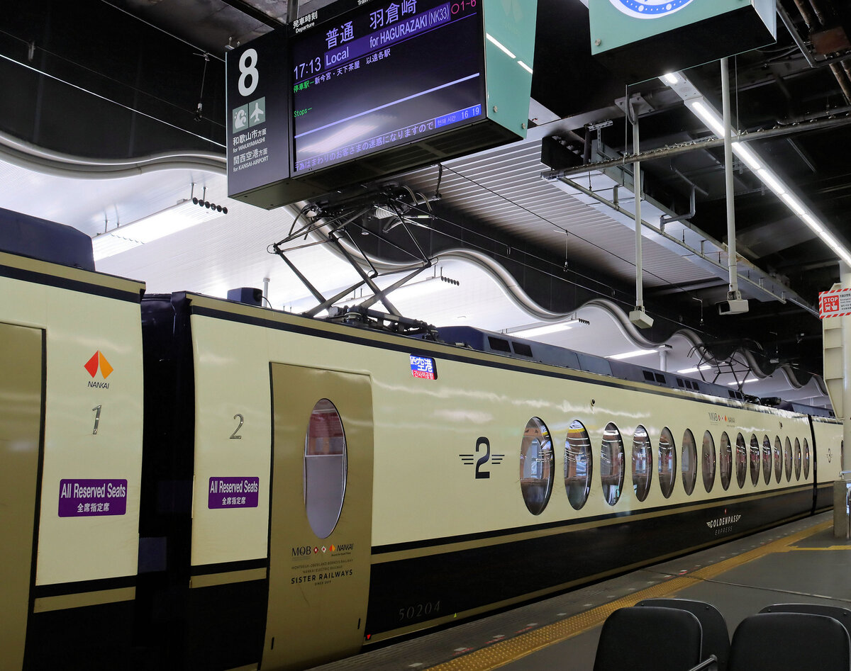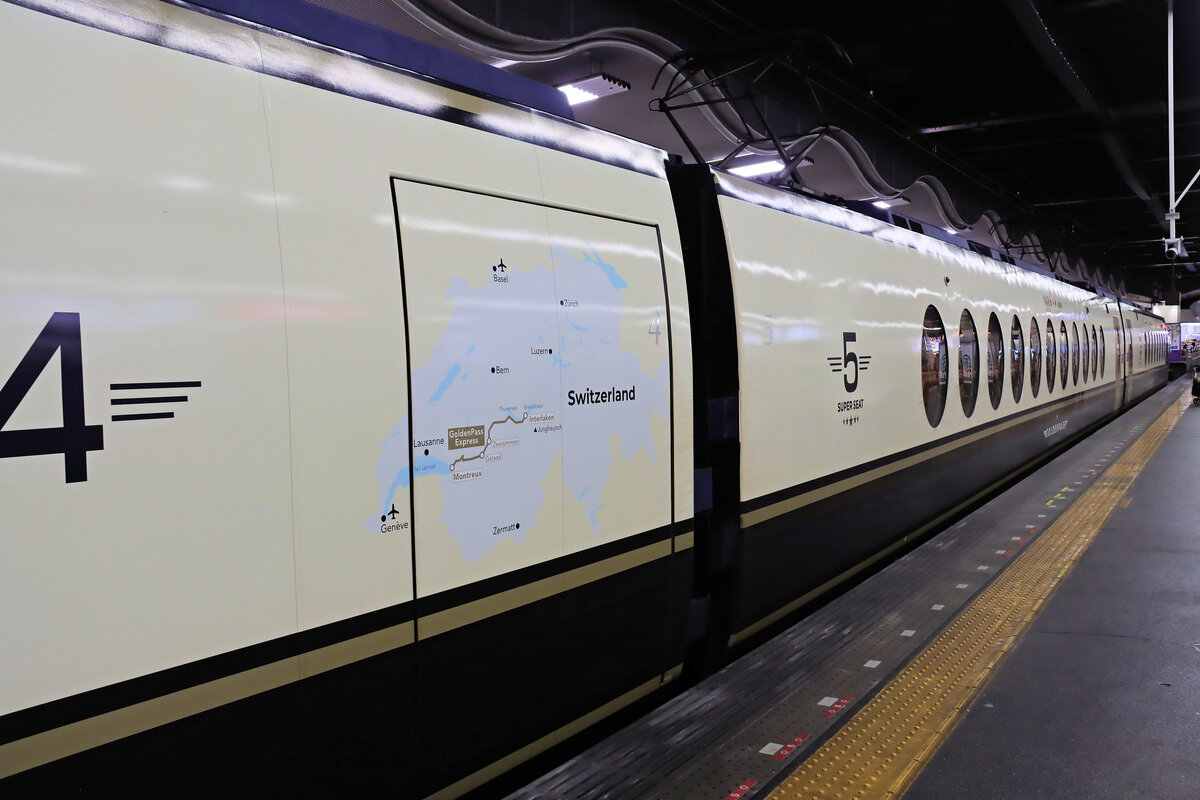 Der für die Strecke zum Kôya-san Weltkulturerbe werbende Zug 5002 der MOB in Saanenmöser. 28.März 2017