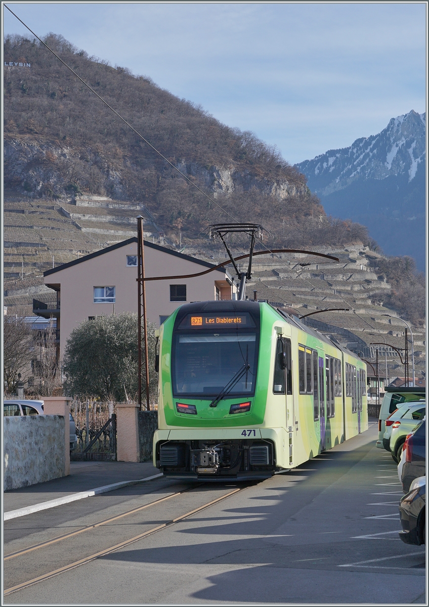Der neue TPC ASD ABe 4/8 471 wartet in Aigle als R71 auf die Abfahrt nach Les Diablerets.
