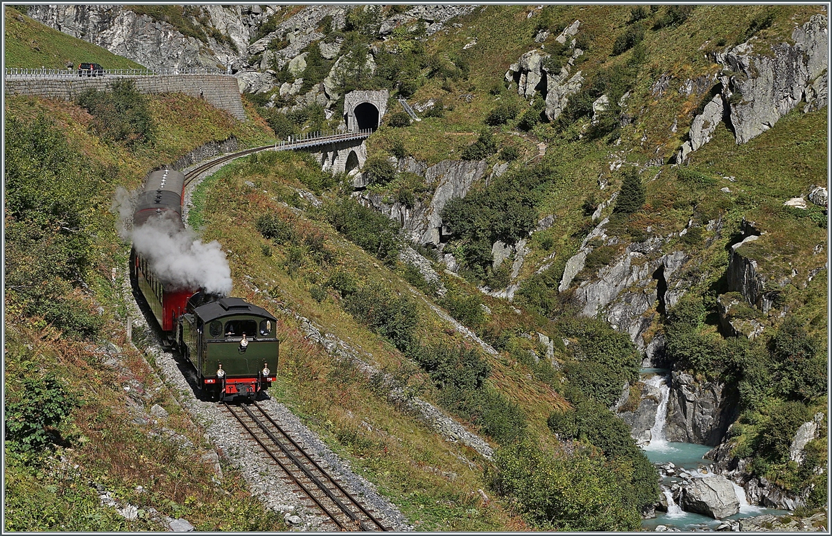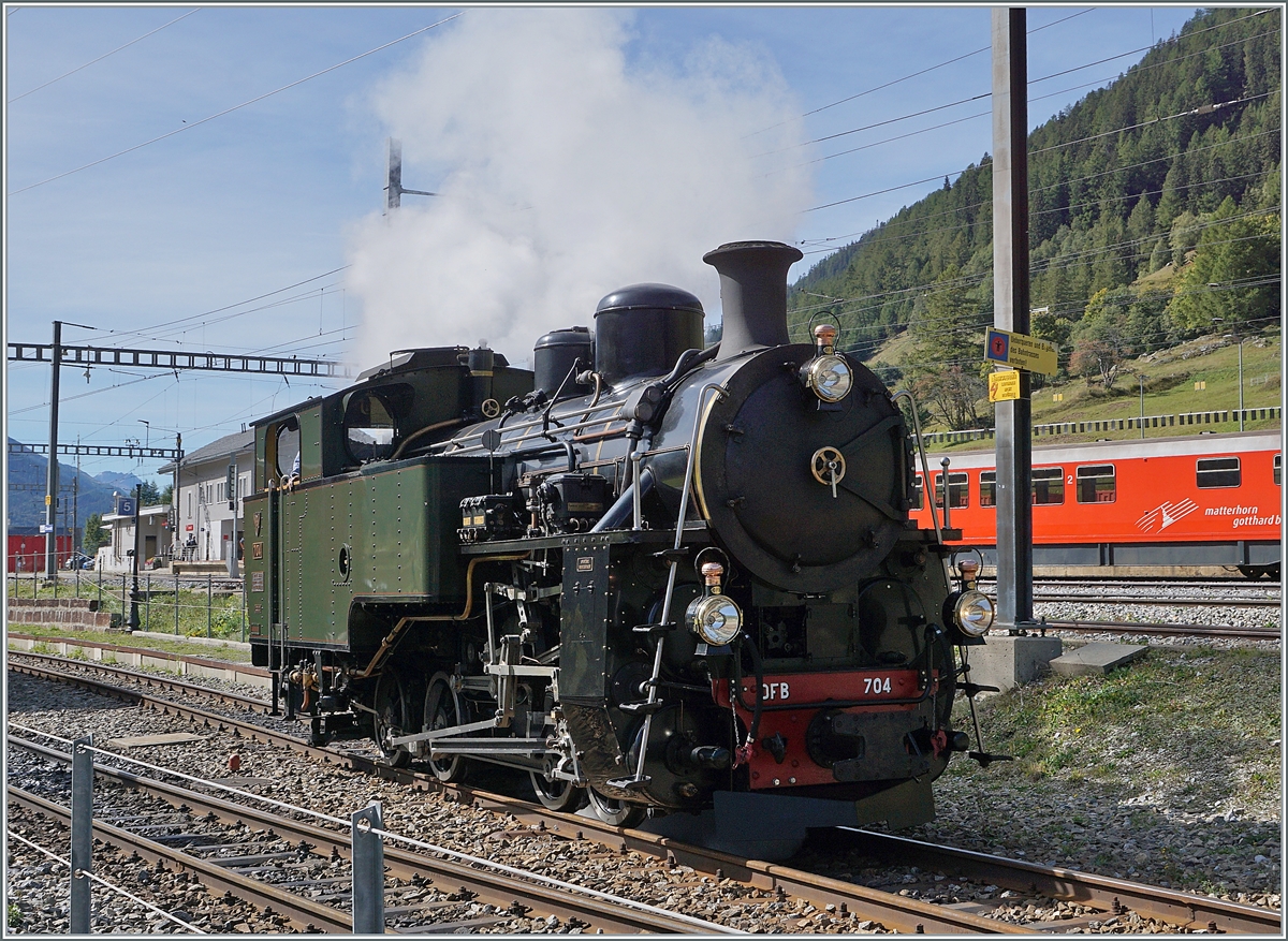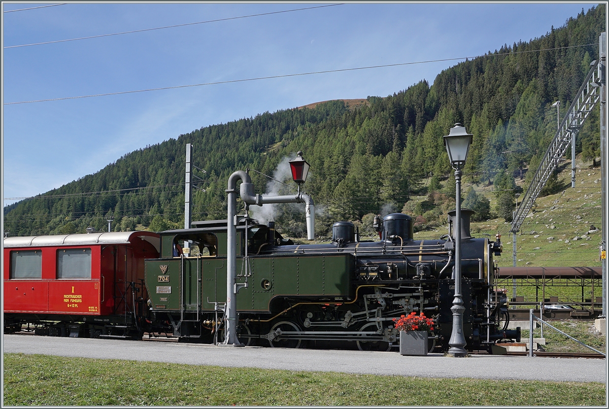 Schon lange wurde an ihr gearbeitet, ab nächstem Jahr bei der DFB dabei, die Vietnamesin HG 4/4 704. Nach wirklich unzähligen Arbeitsstunden war sie kurz vor der Abnahme zu letzten Bremsproben unterwegs. In Realp durfte sie so richtig die Sau rauslassen, Vollgas-Bremsen-zurück-und wieder. September 2018.