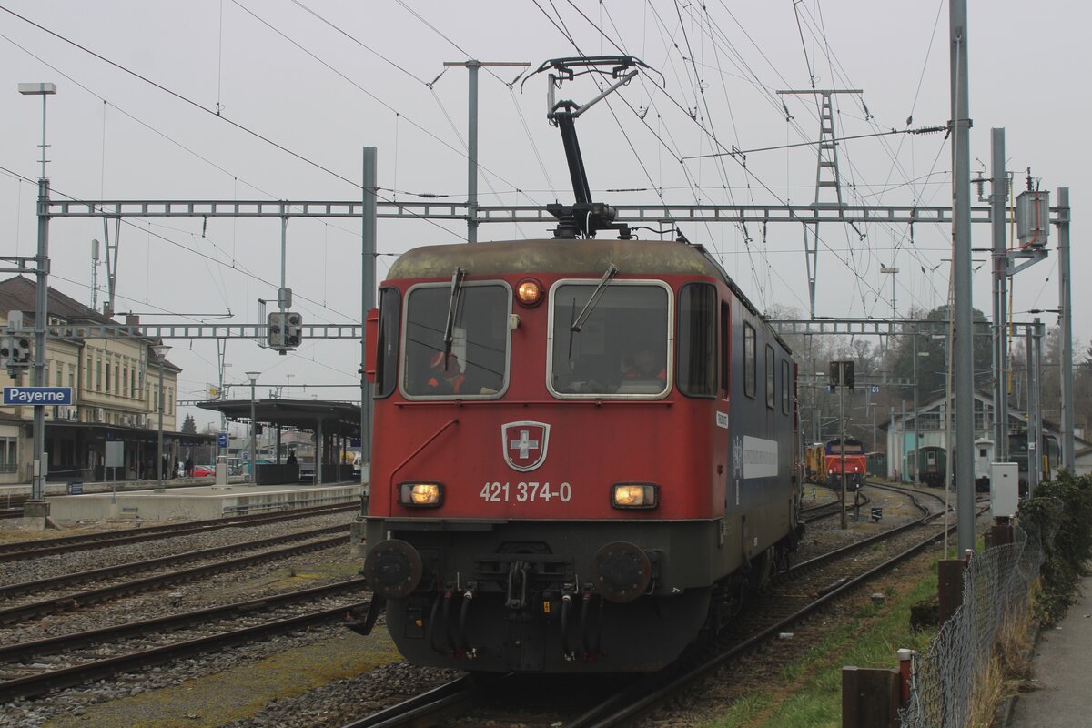 IRSI "Rheingold" Re 4/4 II 11387 (Re 421 387) bei der BAM MBC kurz um die Mittagszeit erhellten ein paar Sonnenstrahlen die Szenerie, als die IRSI "Rheingold" Re 4/4 II 11387 (Re 421 387) bei der BAM MCB, die einen Kieszug nach Morges gebracht hatte, diesen stehen liess und in Richtung Lausanne Triage fährt, um dort einen weiteren Kieszug abzuholen.