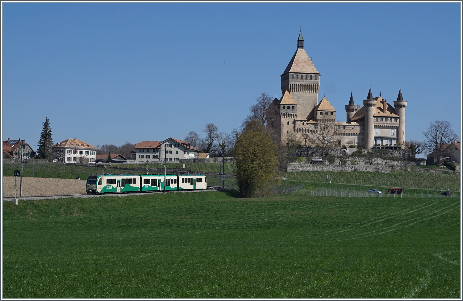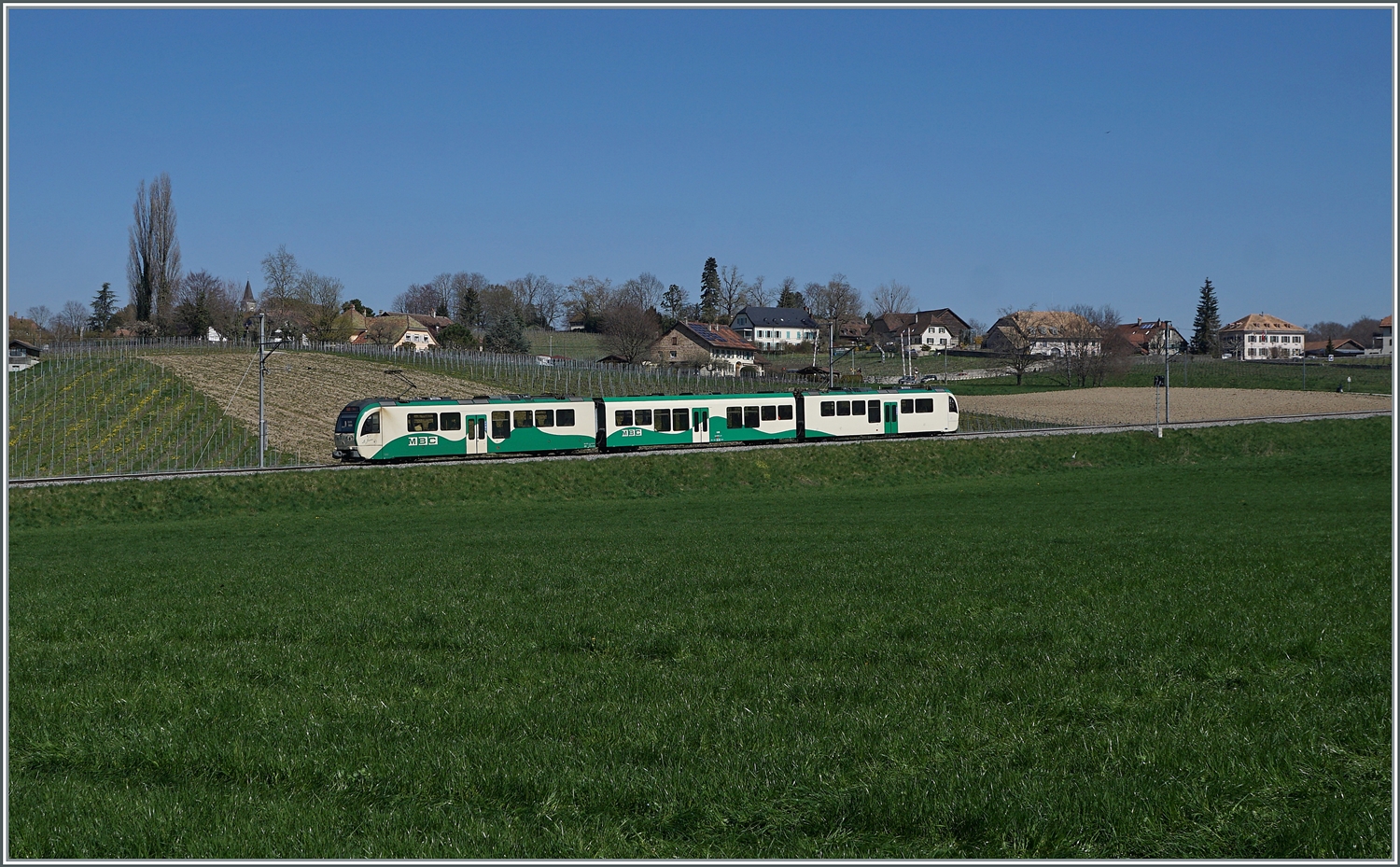 Ein BAM MBC Regionalzug von Bière nach Morges unterwegs beim Halt in Ballens.
