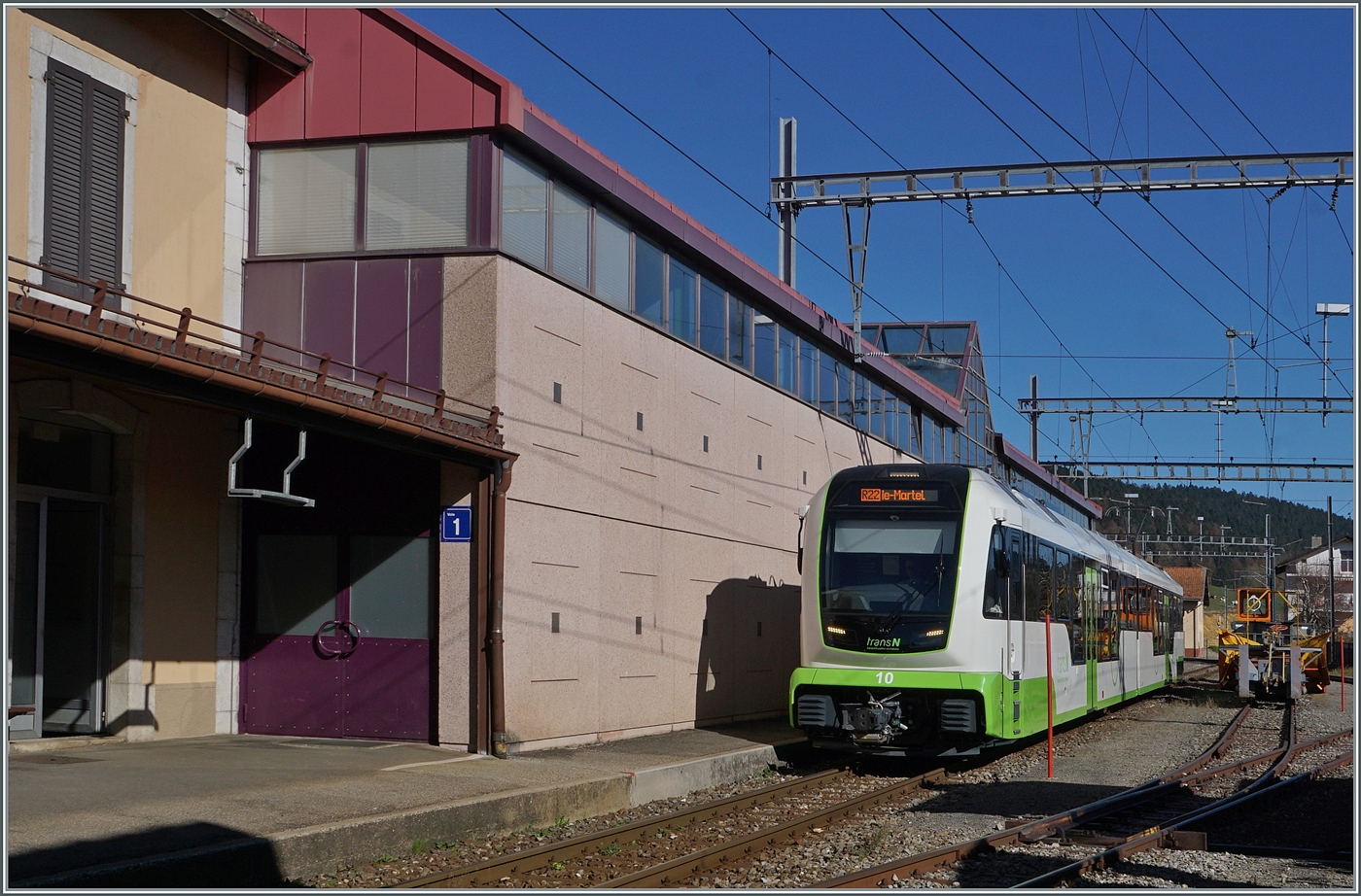 Blick auf den Bahnhof von Les Ponts-de-Martel und den TRN / transN (ex cmn) BDe 4/4 N° 8.
