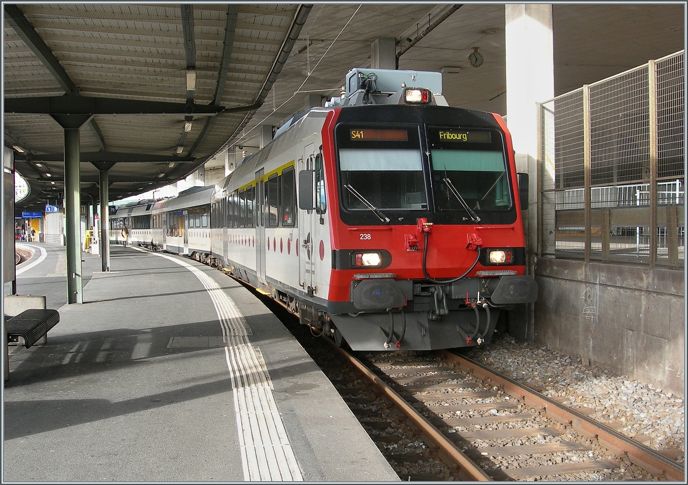 Seit dem Fahrplanwechsel verkehren Domino-Züge im Halb-Stunden Takt als S 40 und S 41 von Fribourg nach Lausanne und zurück. Meistens kommen SBB Dominos zum Einsatz, aber einige Kurse werden mit TPF Domino Zügen geführt, wie hier die S41 24531 nach Fribourg, welche in Lausanne auf die Abfahrt auf Gleis 70 wartet.