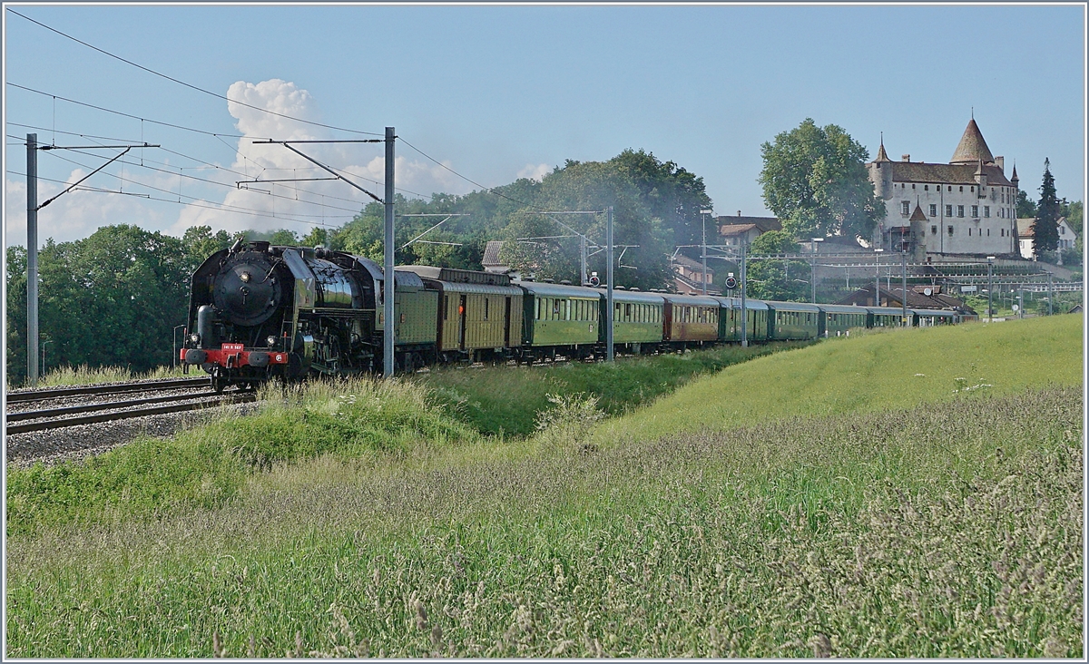 Bilder aus alten Tagen: mit einer Re 4/4 II an der Spitze fährt ein Swiss-Expess Städteschnellzug durch den Bahnhof von Flamatt.