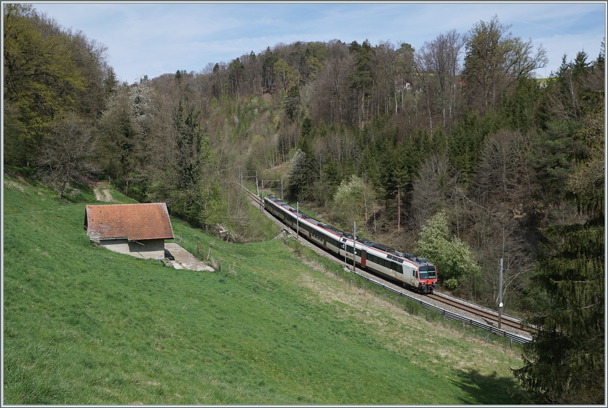 Der Bahnhof von Sugiez zeigt sich noch in der ursprünglichen Landbahnhofambiente, etliche Profilstangen deuten jedoch darauf hin, dass hier bald moderne Zeiten anbrechen werden.