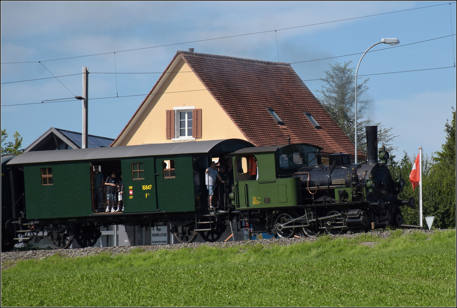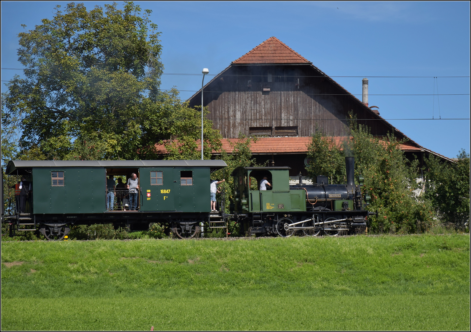 OeBB: Die firsch aufgearbeitete E 3/3 456 (ehemals NOB) vom Verein Historische Seethalbahn wartete am 6. August 2016 auf der OeBB-Endhaltestelle Oensingen auf die Rückfahrt nach Hochdorf.