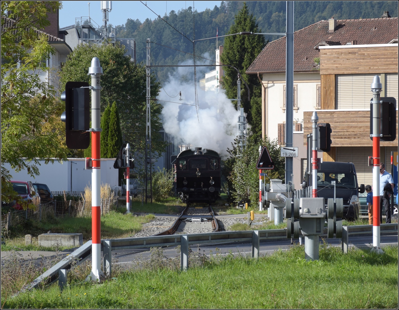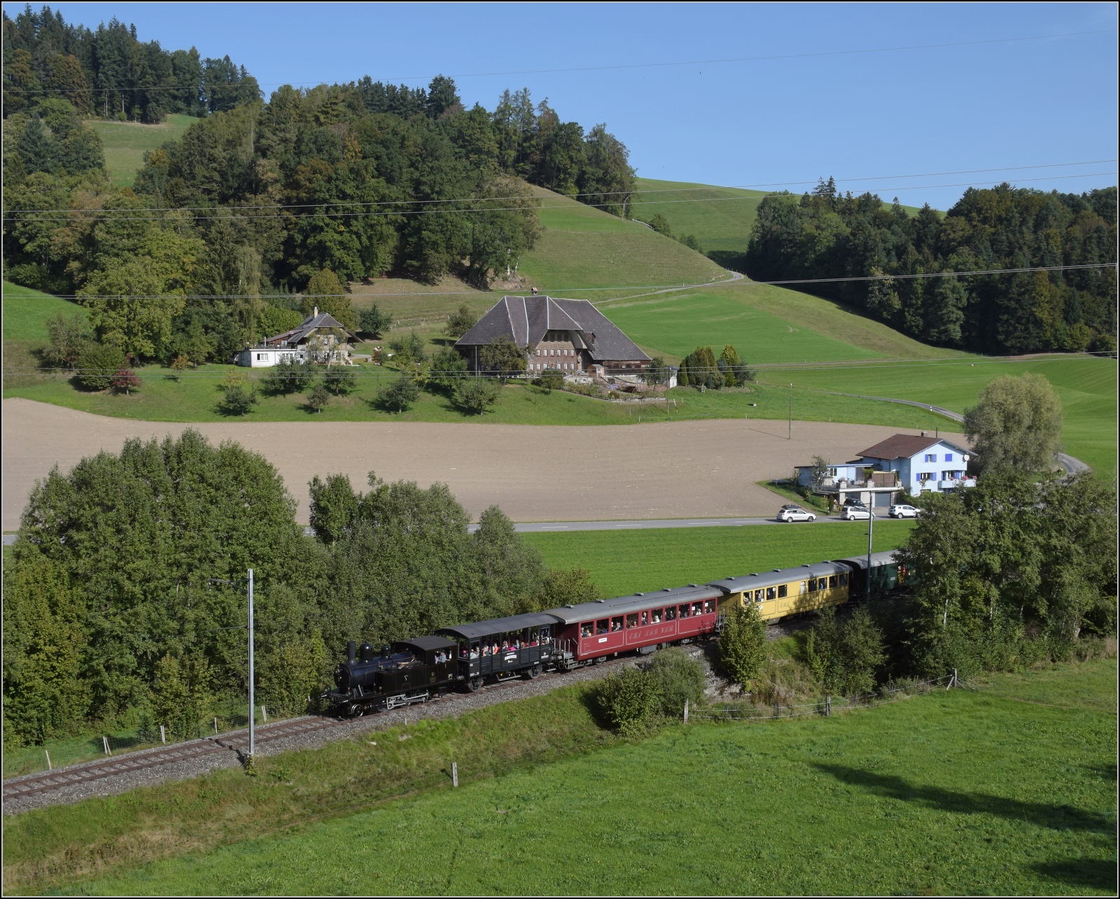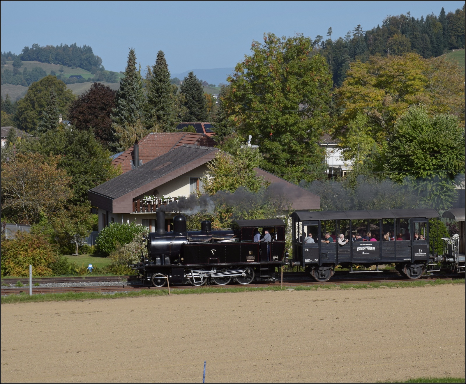 Ed 3/4 51 der Bern-Schwarzenburg-Bahn auf dem Weg nach Sumiswald und Wasen. Meibach, Oktober 2023.