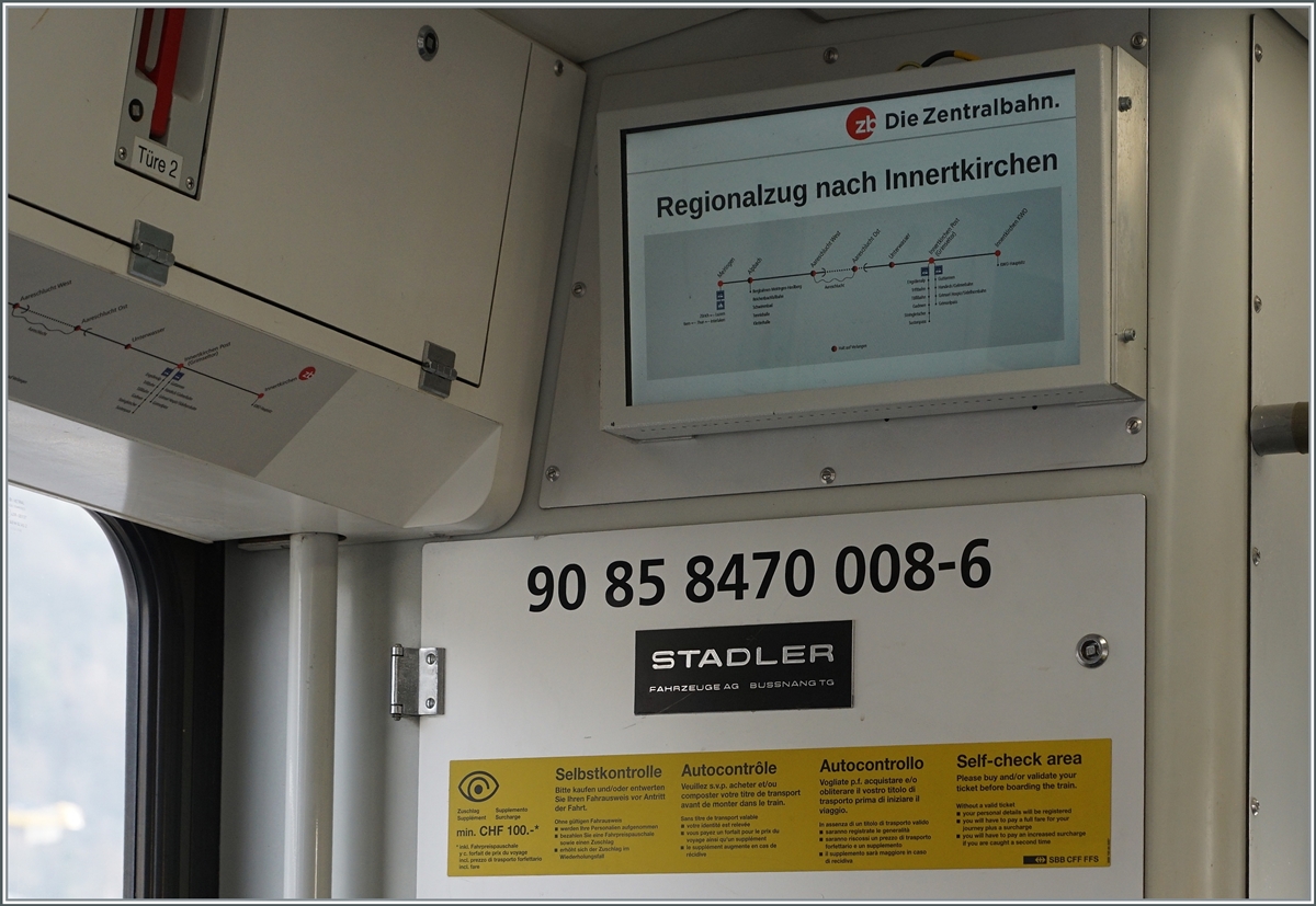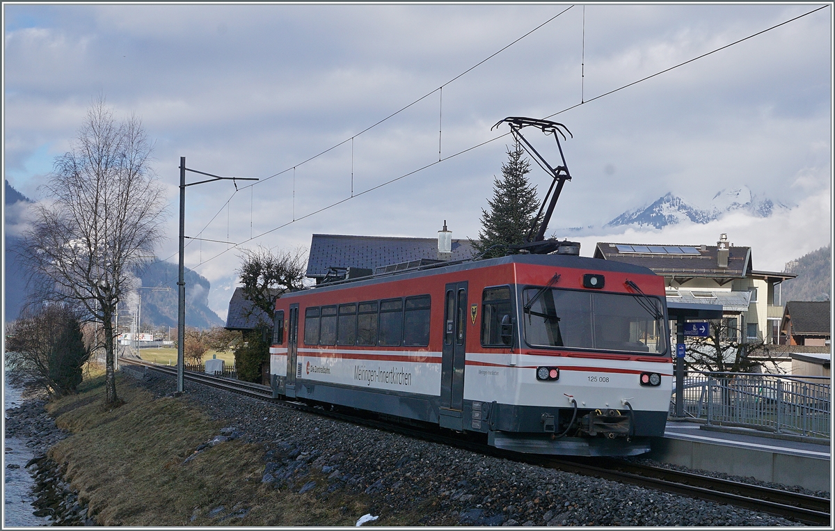 Der MIB (?) und ex CJ BDe 4/4 11 und der Zentralbahn Be 125 008 stehen in Innertkirchen. Während der GTW Be 2/6 125 013 zur Revision im Dépôt weilt, pendelt heute der Be 125 008, bei der MIB als Be 4/4 8 geführt und im Innenraum mit 90 85 8470 008-6 angeschrieben ist zwischen zwischen Innertkirchen und Meringen hin- und her.