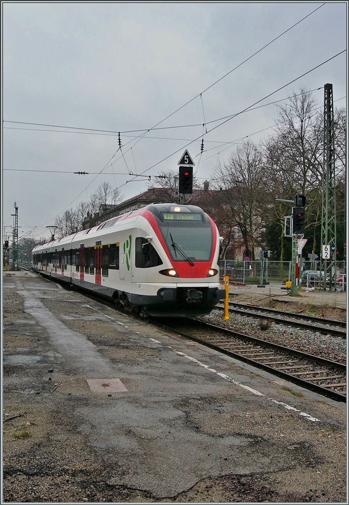Ein "Flirt" als S 6 auf dem Weg nach Basel beim Halt in Lörrach.