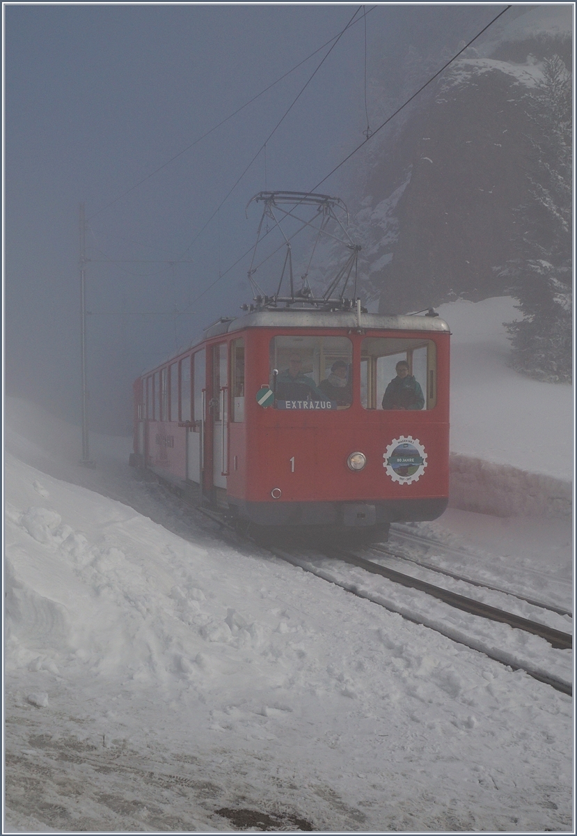 Gleich darauf folgt mit dem Beh 2/4 N° 4 (SLM/BBC, Baujahr 1953) ein weiterer Zug in Richtung Vitznau.