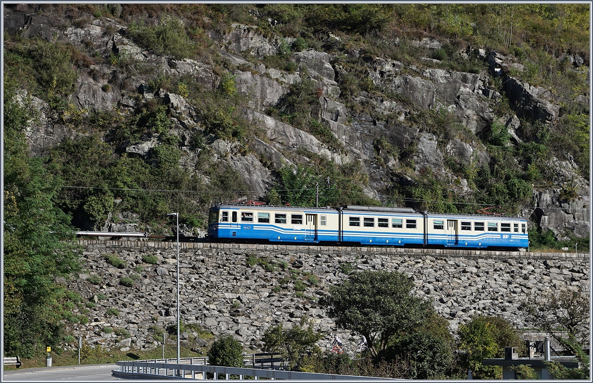 Ein SSIF ABe 8/8 ist bei Intragna auf dem Weg nach Domodossola.
