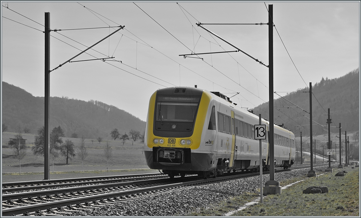 Zu Ollis Bild "Mit dem Diesel-IC durch die Schweiz..." Zu einer Zeit, da Auslandreisen kaum möglich waren, musste das "Ausland" eben in die Schweiz kommen: Der DB 612 105 ist bei Neuenkirch auf der Fahrt nach Singen (Htw).