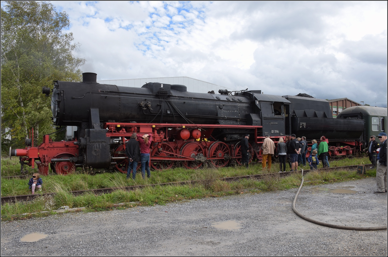 52 7596 hat Durst. Gelegenheit für die Fahrgäste zu Portraits oder eingängigen Betrachtungen. Ramsen, Oktober 2022.