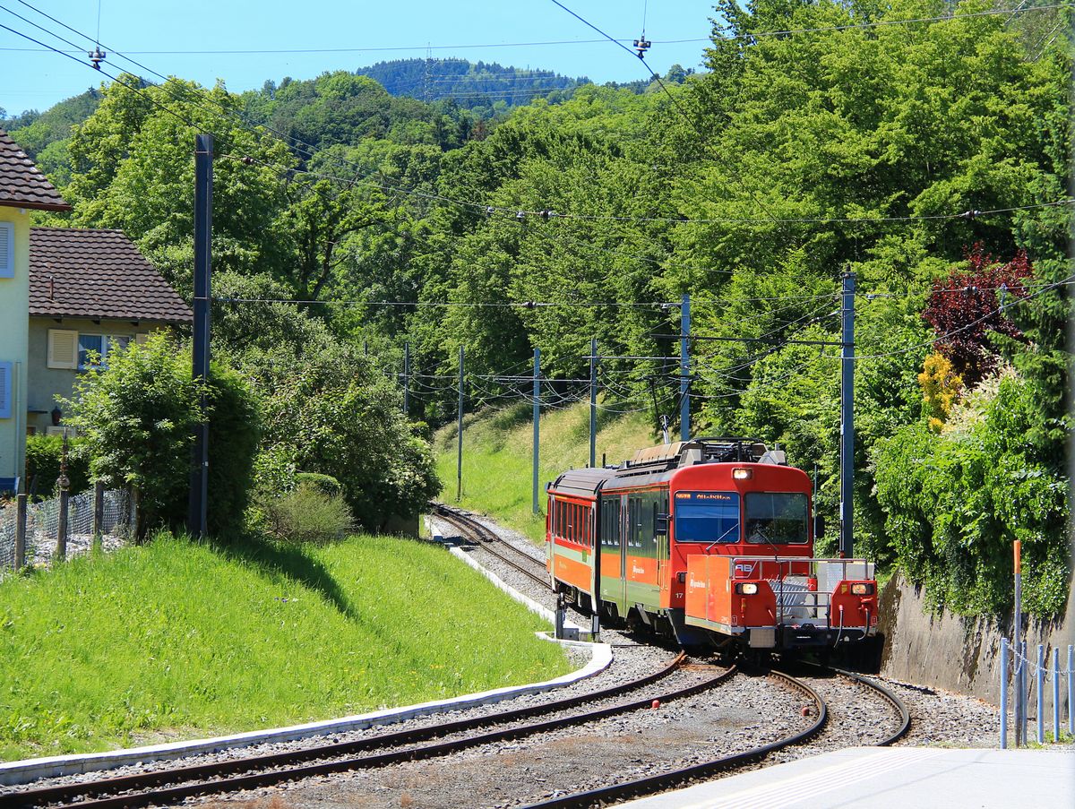 Der aus Gais in Altstätten Stadt eingetroffen AB Regionalzug, bestehend aus dem BDeh 4/4 17 und dem ABt 117, wartet nun auf die Rückfahrt ins Appenzellerland.