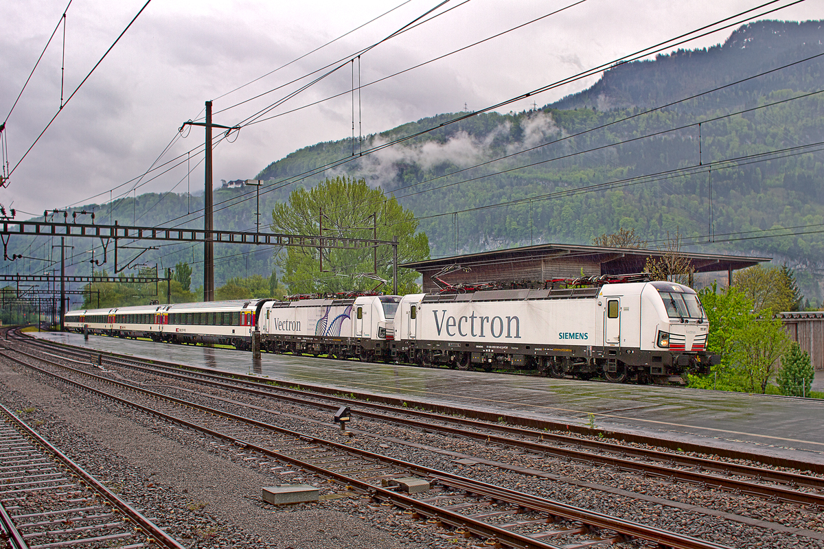 Leider mit dem Wetter kein Glück gehabt, dafür aber mit der Lok dieses EuroCity. Die Re 4/4 II 11109 mit Swiss-Express-Lackierung zieht am 16.03.2014 den von Zürich nach Graz fahrenden EC 163 'TRANSALPIN' durch den am Walensee liegenden Bahnhof von Mühlehorn.
