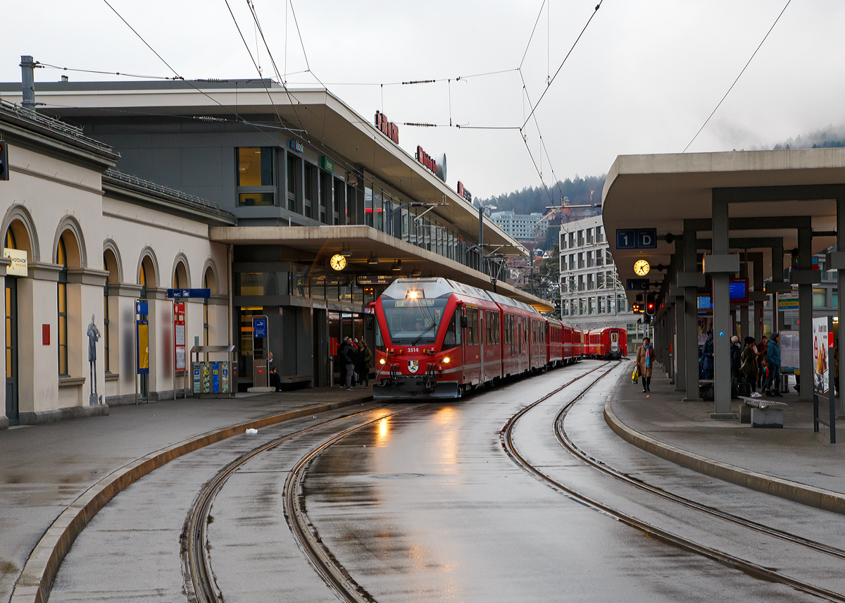 Im besten Licht stehen die Berninabahn-Triebwagen ABe 4/4 I 30 und 32 im April 1996 vor dem Depot Sand in Chur. Nach Umstellung auf Wechselstrom wurde das Depot aufgelöst und wird heute von einem Gleisbauunternehmen zur Fahrzeugabstellung genutzt.