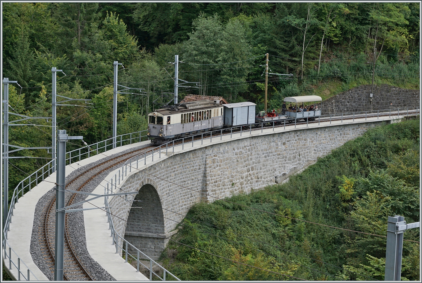 Les chemins de fer disparus - Die verschwundenen Bahnen (LLB 1915 - 1967) Der Leuk Leukerbad Bahn (LLB) Triebwagen mit der Anschrift ABFe 2/4 N° 10 der Blonay Chamby Bahn beim Manöver in Blonay.